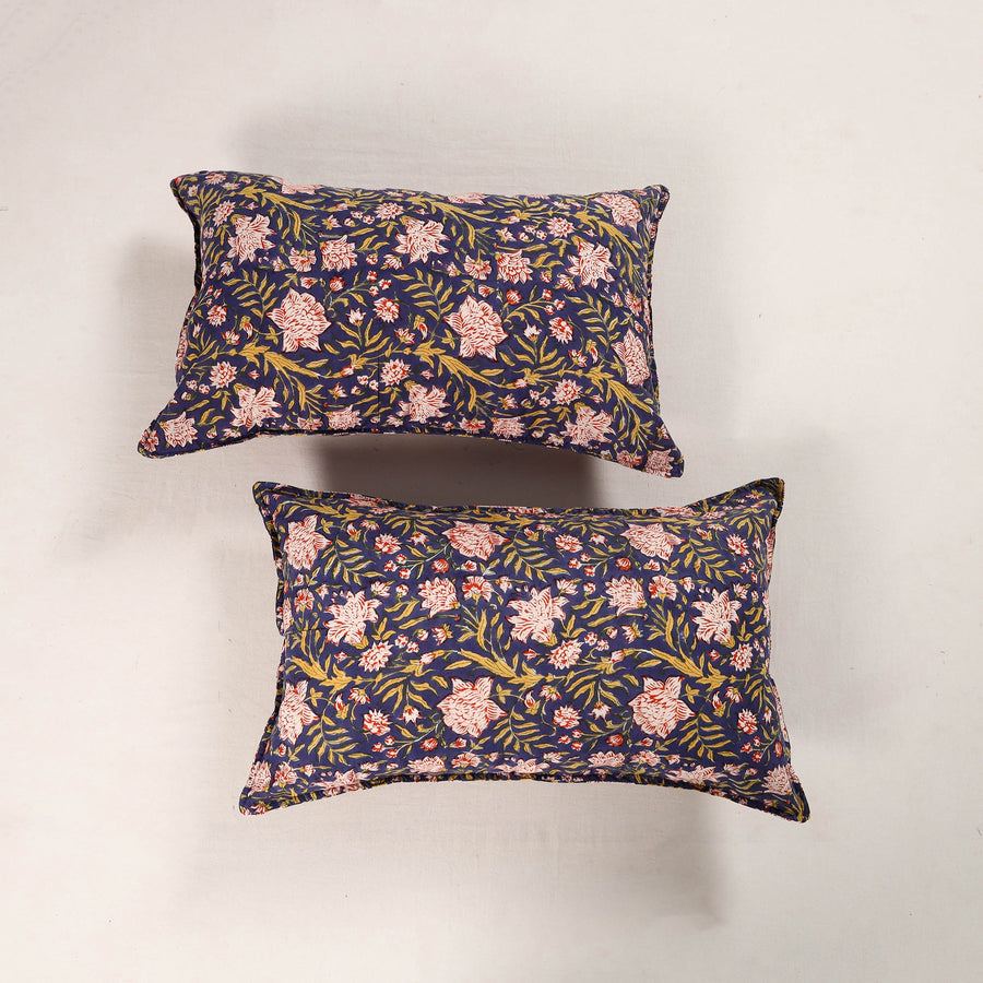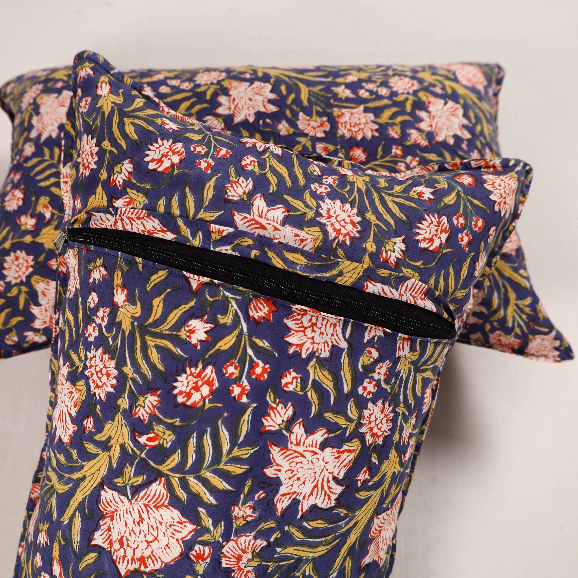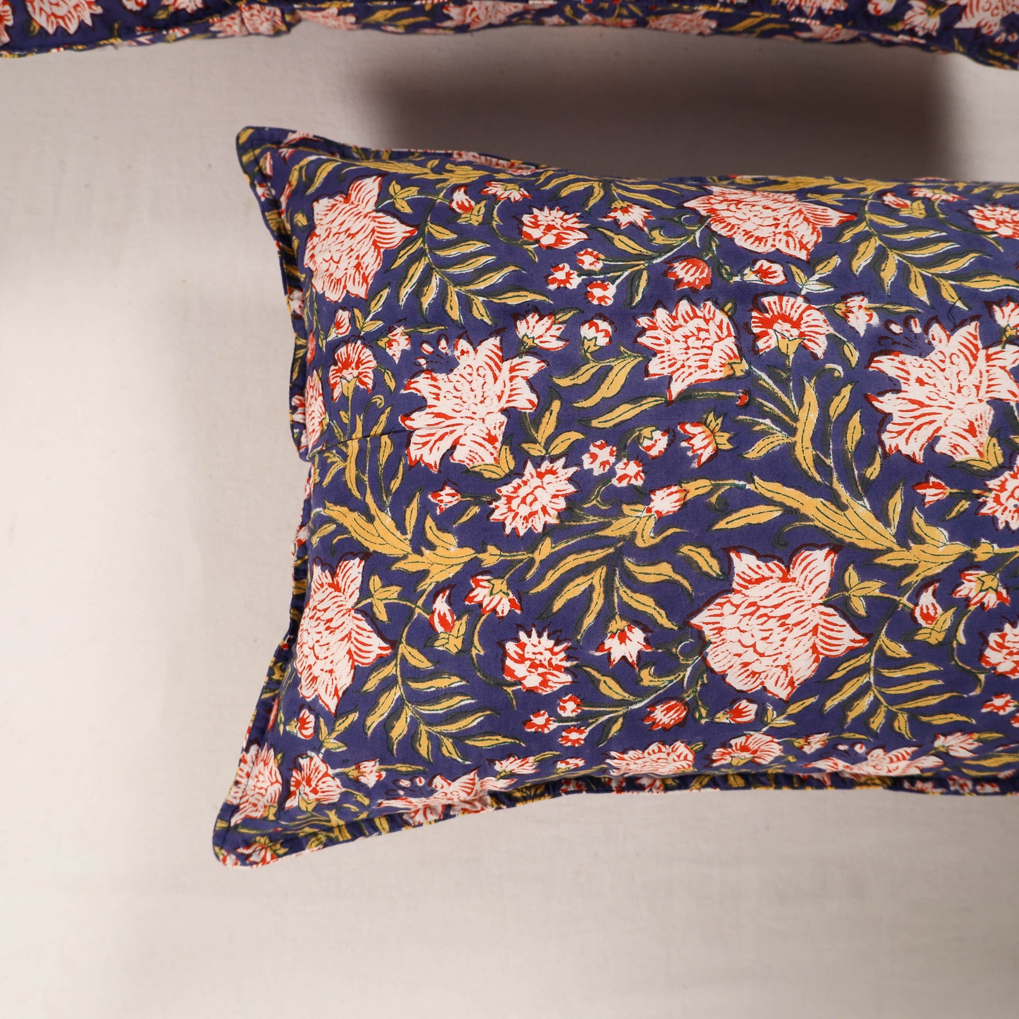 Enhance your home with our blue set of 2 sanganeri block print cotton pillow covers. Made by skilled artisans, these pillow covers bring a blend of traditional craftsmanship and modern. The cotton material is both durable and eco-friendly, perfect for adding a touch of style and sustainability to your living space & bedroom.
