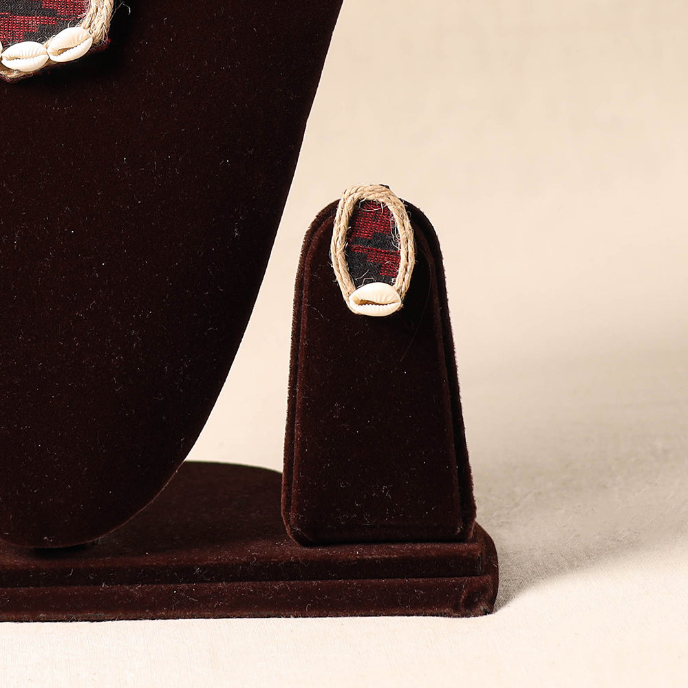 Add a touch of handmade charm with this red necklace set, crafted from thread and adorned with a fabric jute pendant enhanced by shell work. The set includes matching earrings to complete your look. Made by skilled artisans, it’s lightweight and pairs effortlessly with traditional outfits. Ideal for festive occasions, cultural events, or simply for adding a unique flair to your everyday style.