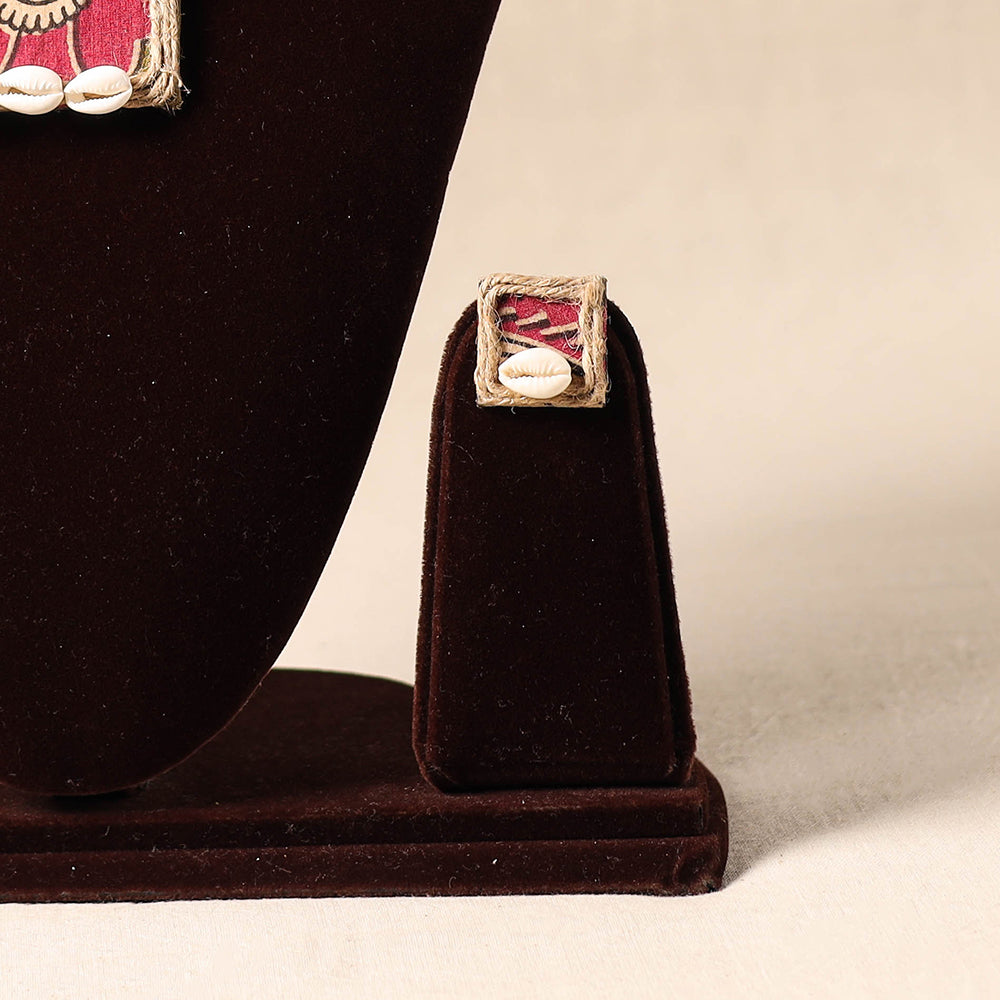 Add a touch of handmade charm with this pink necklace set, crafted from thread and adorned with a fabric jute pendant enhanced by shell work. The set includes matching earrings to complete your look. Made by skilled artisans, it’s lightweight and pairs effortlessly with traditional outfits. Ideal for festive occasions, cultural events, or simply for adding a unique flair to your everyday style.