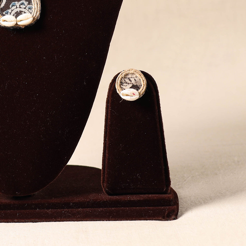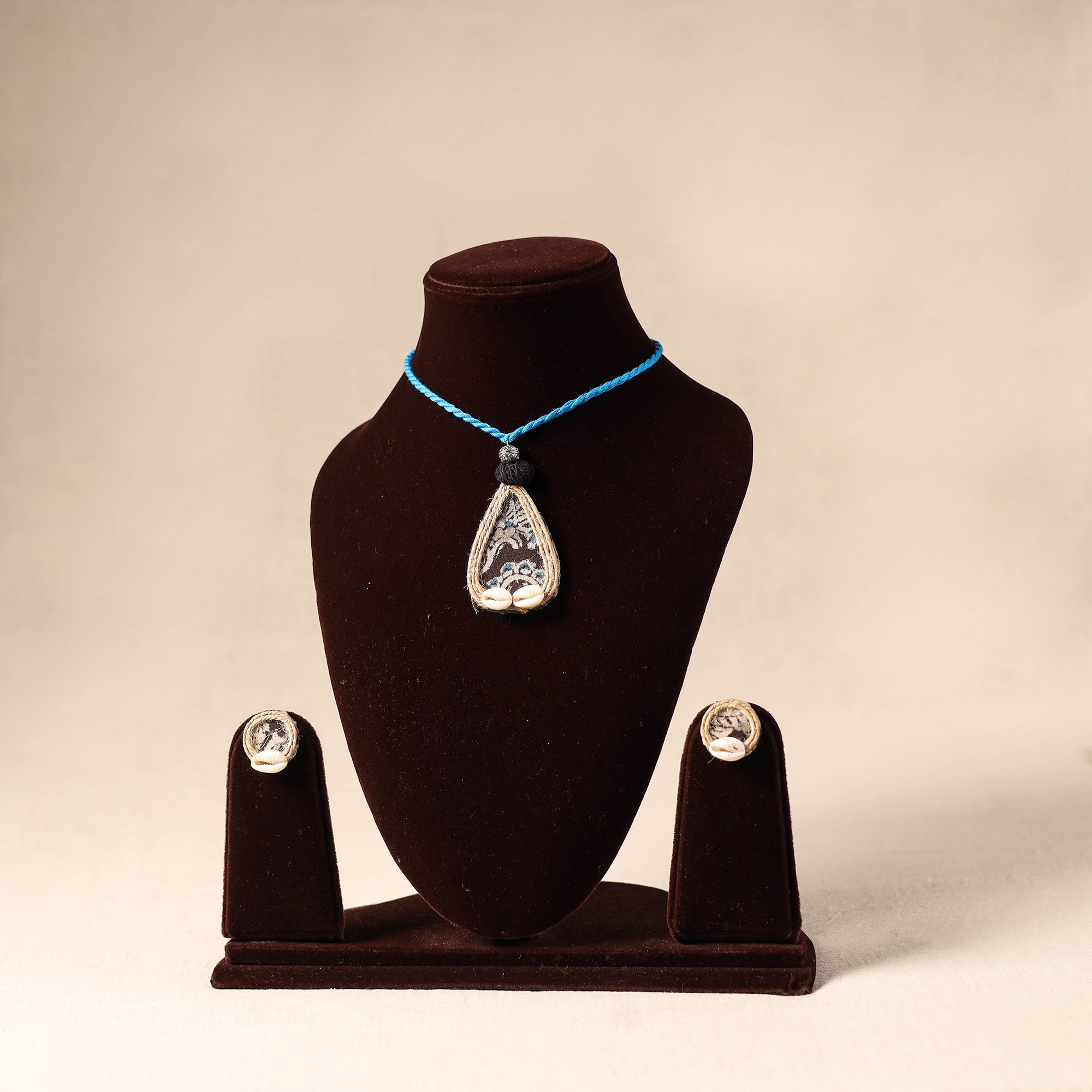 Add a touch of handmade charm with this beige necklace set, crafted from thread and adorned with a fabric jute pendant enhanced by shell work. The set includes matching earrings to complete your look. Made by skilled artisans, it’s lightweight and pairs effortlessly with traditional outfits. Ideal for festive occasions, cultural events, or simply for adding a unique flair to your everyday style.