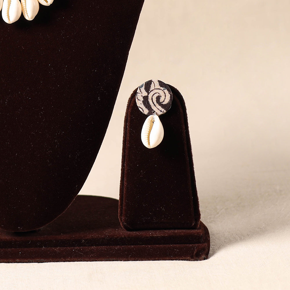 Add a touch of handmade charm with this beige necklace set, made from thread and adorned with a fabric pendant featuring delicate shell work. It also comes with matching earrings to complete your look. Crafted by skilled artisans, it's lightweight and pairs effortlessly with traditional outfits. Ideal for festive occasions, cultural events, or simply to bring a distinctive touch to your style.