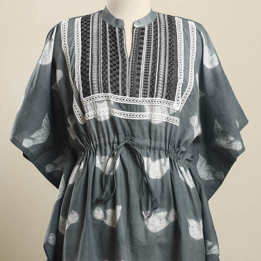 Embrace effortless style with this beautifully crafted grey shibori tie-dye kaftan. Its breathable cotton fabric, combined with flowy sleeves and an adjustable drawstring waist, makes it the perfect blend of comfort and chic. Whether you're strolling along the beach or relaxing at home, this kaftan ensures you stay at ease while looking fabulous.