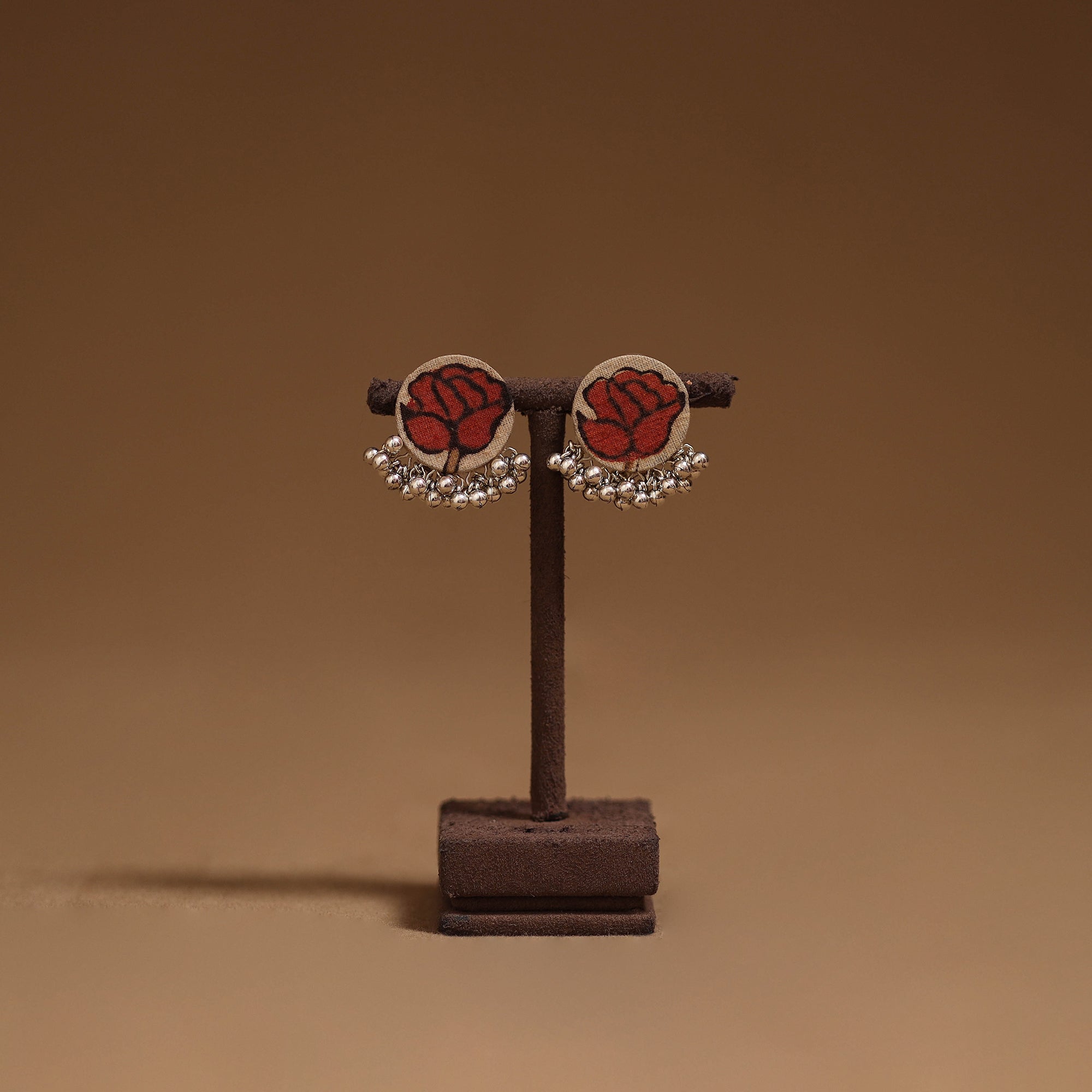 Handmade fabric earrings with ghungroo detailing enhances their charm. Perfect for everyday wear or special occasions, these earrings blend traditional style with a graceful touch.