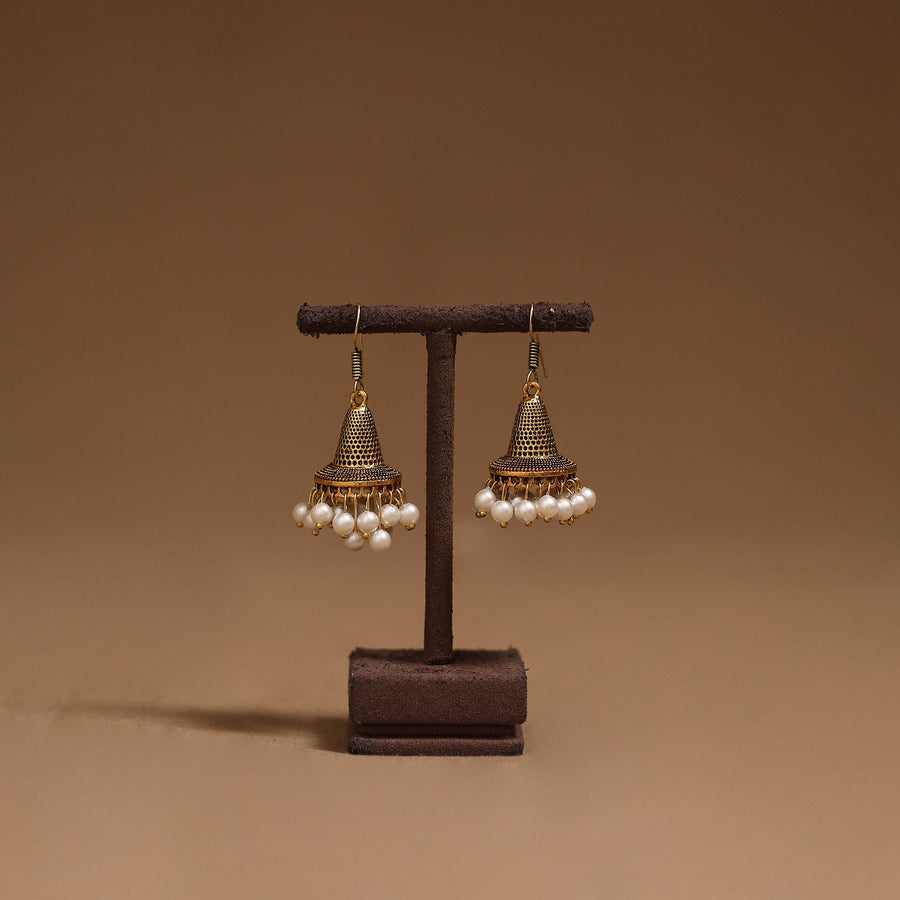 Add a unique flair to your outfit with these handmade german silver jhumki earrings. Beads detailing enhances their charm. Perfect for everyday wear or special occasions, these earrings blend traditional style with a graceful touch.