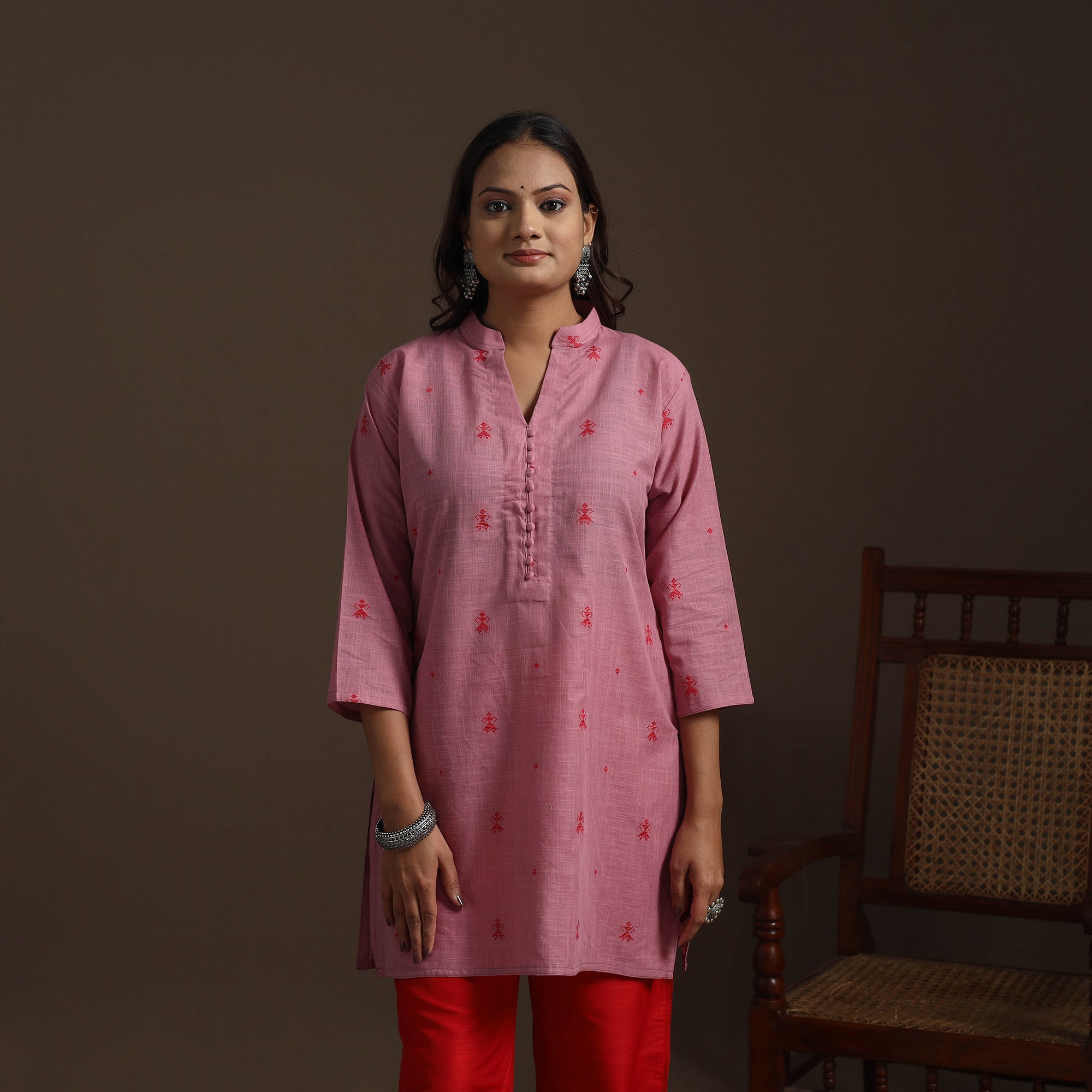 Stay stylish and comfortable in this short cotton jacquard kurta. The jacquard weave embeds patterns directly into the fabric, adding a soft texture you can both see and feel. Perfect for office wear or a relaxed day out.