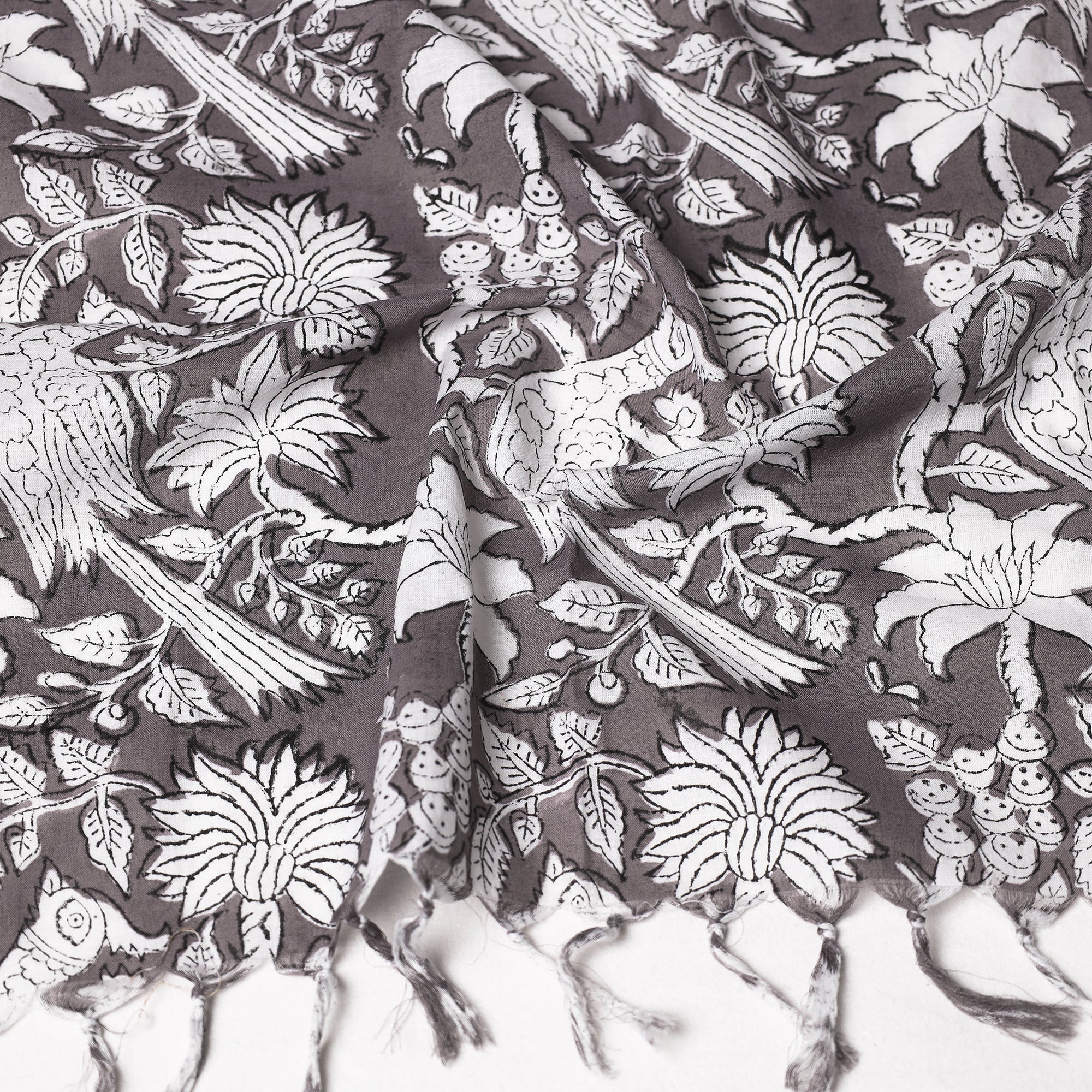 Fine quality, delicate floral sanganeri block printed cotton stole with tassels made using natural dyes. Sanganeri is a hand-block printing technique originating from Sanganer, a village in the southern part of Jaipur, Rajasthan.
