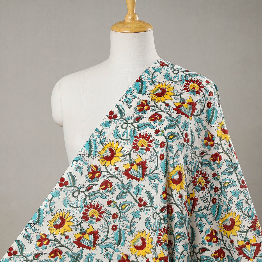 Experience the charm of sanganeri print fabric, renowned for its exquisite block print technique from Rajasthan. This floral cotton fabric showcases intricate designs and vibrant colors. Bleed-free VAT dyes are used. Perfect for both unique clothing and stylish home decor, it embodies the rich cultural heritage of India.