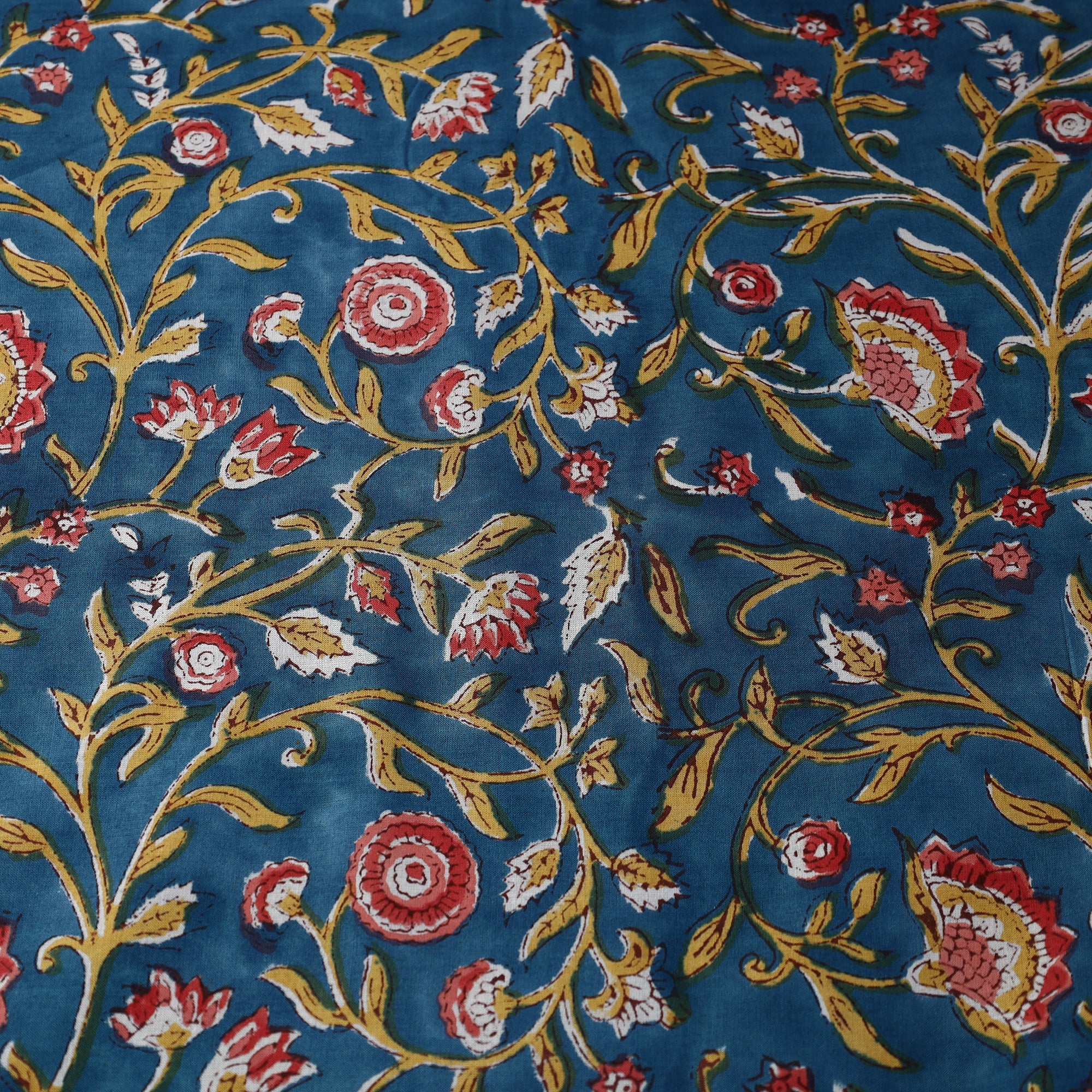 Experience the charm of sanganeri print fabric, renowned for its exquisite block print technique from Rajasthan. This floral cotton fabric showcases intricate designs and vibrant colors. Bleed-free VAT dyes are used. Perfect for both unique clothing and stylish home decor, it embodies the rich cultural heritage of India.