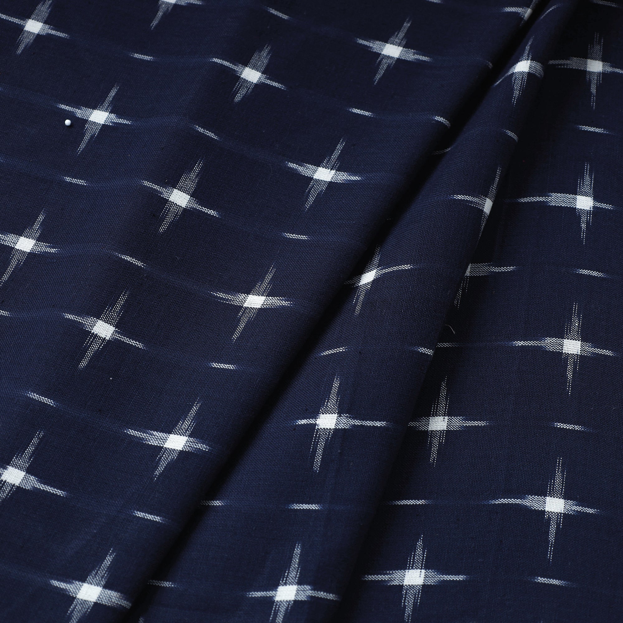 Enhance your creations with our blue pochampally double ikat fabric, made from fine handloom cotton in Andhra Pradesh. This fabric features the distinctive Ikat dyeing technique, offering vibrant patterns and rich textures. Perfect for both traditional and modern projects, it’s a testament to India’s artisanal heritage.