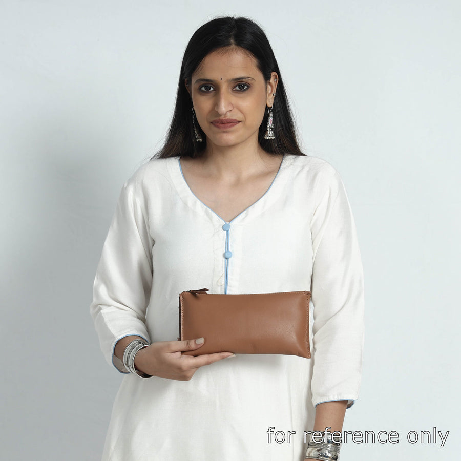 Fine quality shanti brown leather clutch purse handcrafted by the master artisans of West Bengal. This exquisite clutch features eight interior card slots for ultimate organization and sophistication. Elevate your style while carrying your essentials in this superior quality leather accessory, perfect for special occasions or daily use.