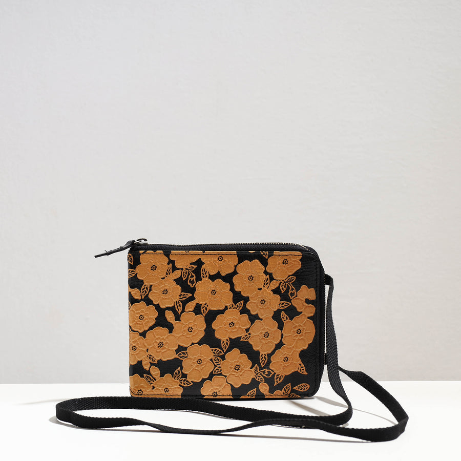 | Material | Fine quality embossed shanti leather passport holder sling bag handcrafted by the master artisans of West Bengal. This exquisite accessory features three card slots and a dedicated passport slot, ensuring you travel in style and convenience. Elevate your journey with this fine quality, functional piece that combines tradition and utility seamlessly. Embossed leather products are made using vegetable tanned leather. Every piece is embossed using a metal die, after which it is individually painted by hand using spirit colours. Each product is then constructed by hand. With time it becomes softer and deeper in colour as is the natural characteristic of leather. |