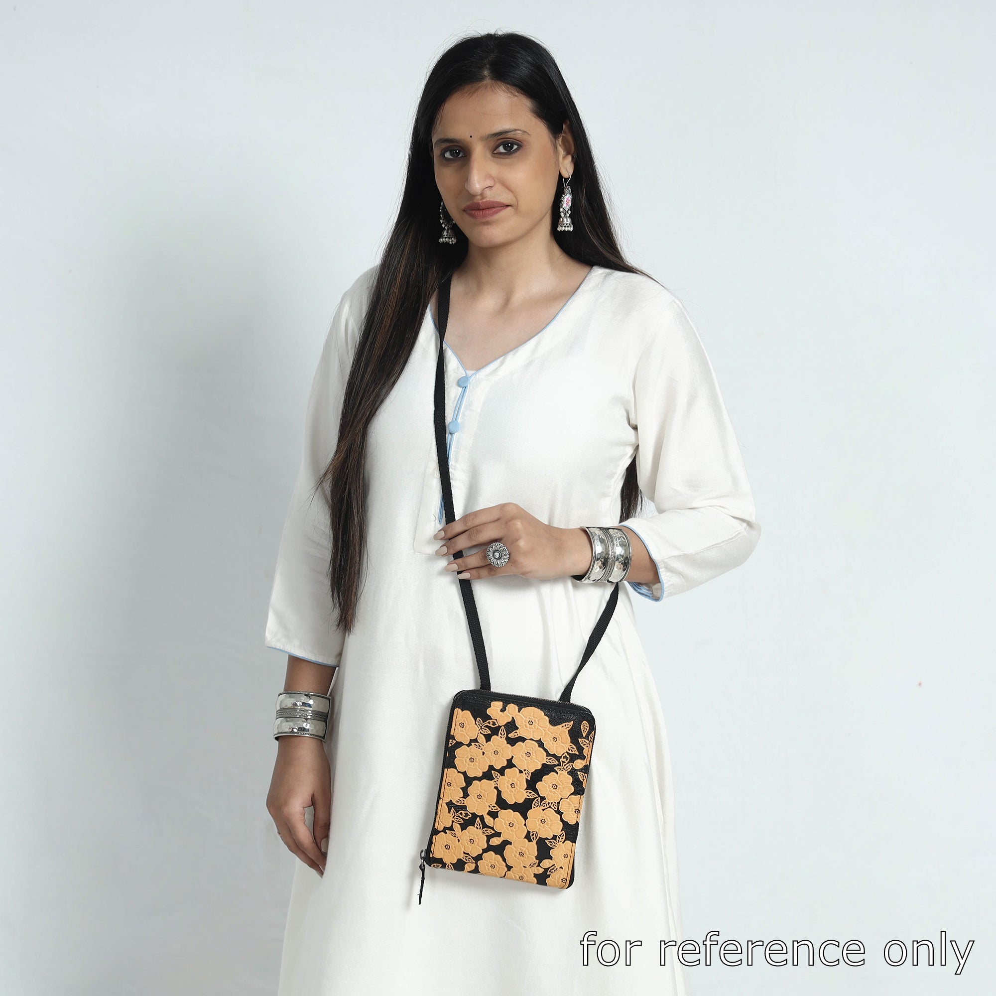 | Material | Fine quality embossed shanti leather passport holder sling bag handcrafted by the master artisans of West Bengal. This exquisite accessory features three card slots and a dedicated passport slot, ensuring you travel in style and convenience. Elevate your journey with this fine quality, functional piece that combines tradition and utility seamlessly. Embossed leather products are made using vegetable tanned leather. Every piece is embossed using a metal die, after which it is individually painted by hand using spirit colours. Each product is then constructed by hand. With time it becomes softer and deeper in colour as is the natural characteristic of leather. |