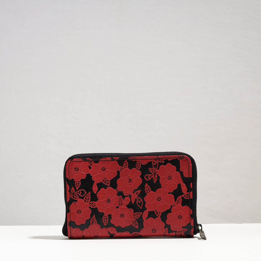 Fine quality embossed shanti leather red mobile case with card holder handcrafted by the master artisans of West Bengal. This premium accessory features a dedicated mobile slot and four card slots, combining style with practicality. Elevate your daily essentials with this fine-quality piece, offering both protection and convenience for your mobile device and cards. Embossed leather products are made using vegetable tanned leather. Every piece is embossed using a metal die, after which it is individually painted by hand using spirit colours. Each product is then constructed by hand. With time it becomes softer and deeper in colour as is the natural characteristic of leather.