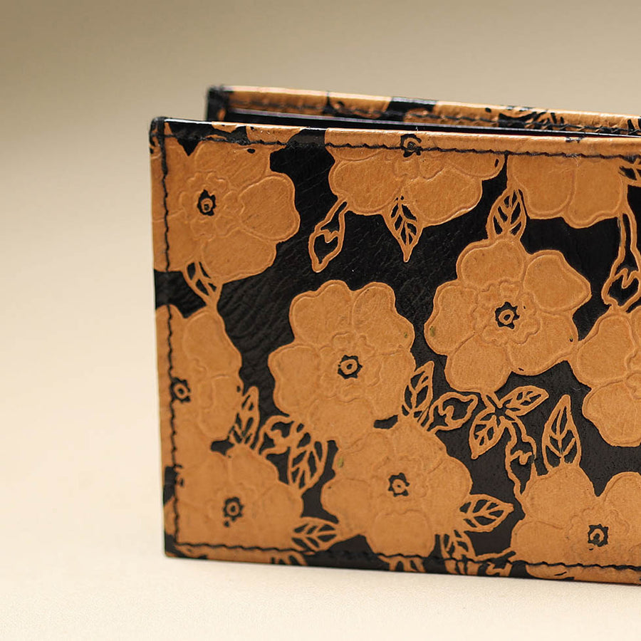 Fine quality embossed shanti yellow leather wallet for men handcrafted by the master artisans of West Bengal. This accessory boasts thirteen card slots, ensuring you stay organized and stylish. With two cash compartments, it's the perfect blend of form and function, making it an ideal companion for the modern man, offering both sophistication and practicality. Embossed leather products are made using vegetable tanned leather. Every piece is embossed using a metal die, after which it is individually painted by hand using spirit colours. Each product is then constructed by hand. With time it becomes softer and deeper in colour as is the natural characteristic of leather.