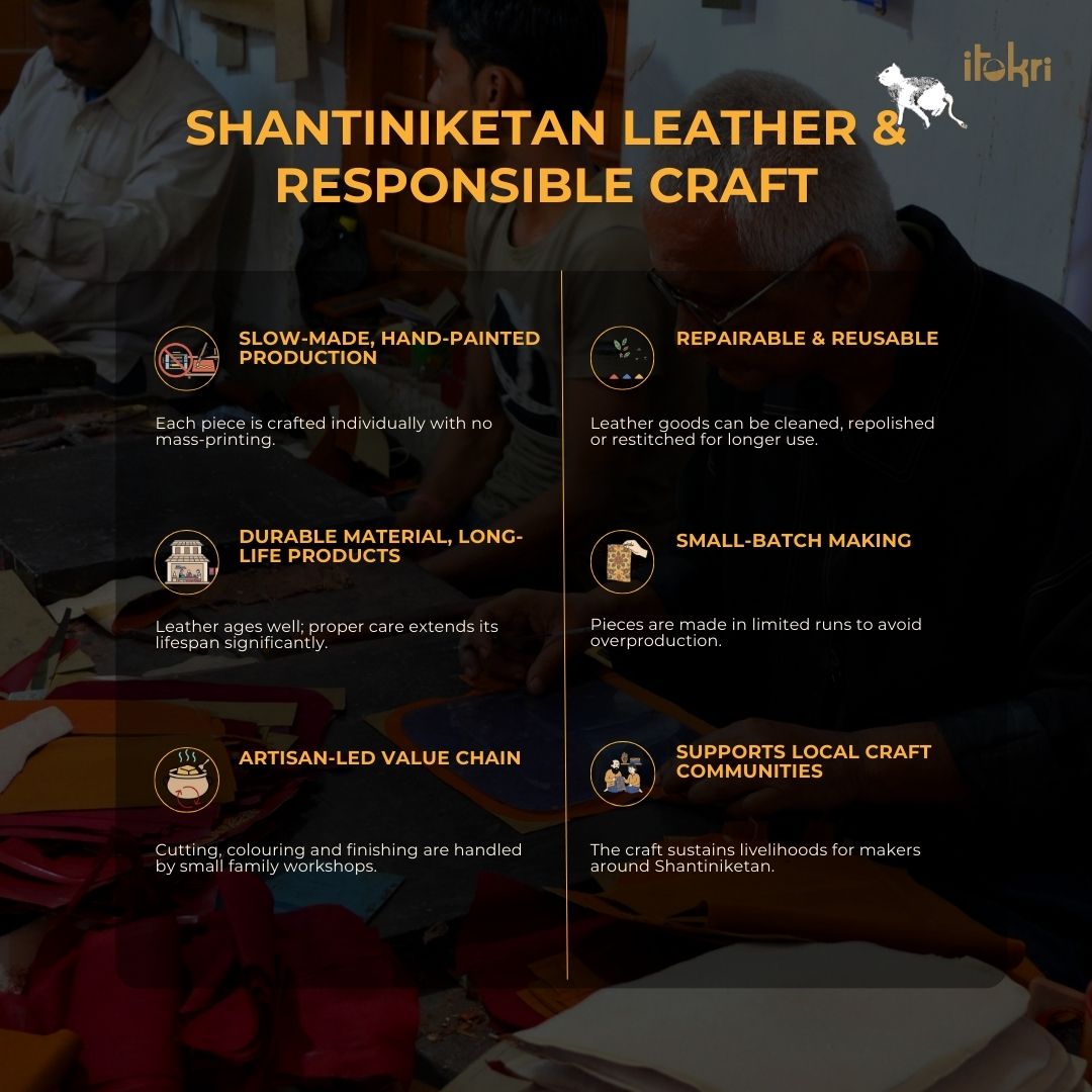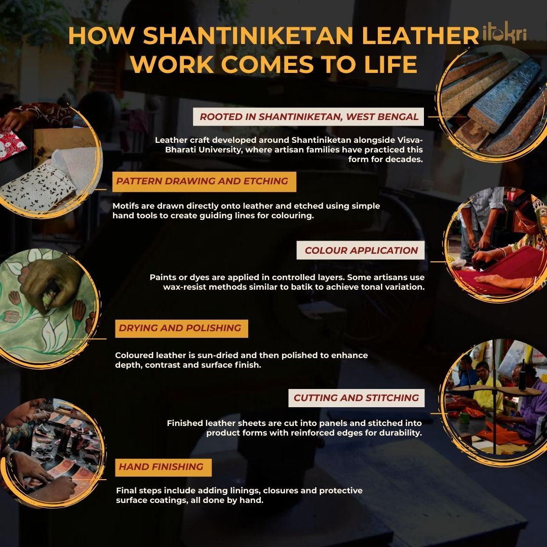 Read MoreSantiniketan Leather Goods are the leather products produced in Santiniketan and the villages near Kolkata, West Bengal, India. The material used is vegetable tanned leather, patterned with overlap dyeing.