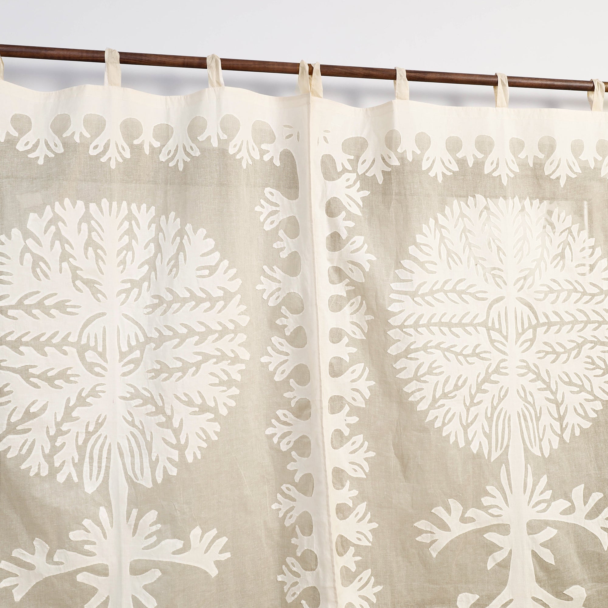 Fine quality beige hand stitched traditional applique cutwork beige window curtain made from organdy cotton fabric. The applique cutwork window curtain from barmer is a stunning home decor piece that adds elegance to any space. Its unique style appliqué work does magic in light and shade with beautiful stories and patterns. it diffuses soft, natural light while providing privacy. This curtain serves as a stylish window treatment, enhancing the ambiance of your room with its exquisite craftsmanship and timeless appeal.