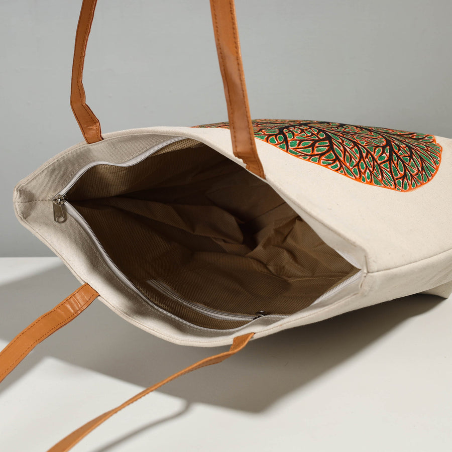 Carry your essentials with style and artistry using this beige canvas cotton handpainted shoulder bag. Featuring acrylic art on canvas cotton, this bag combines functionality with a creative touch. Spacious with a zippered pocket and lined interior, it’s perfect for casual outings or daily errands.