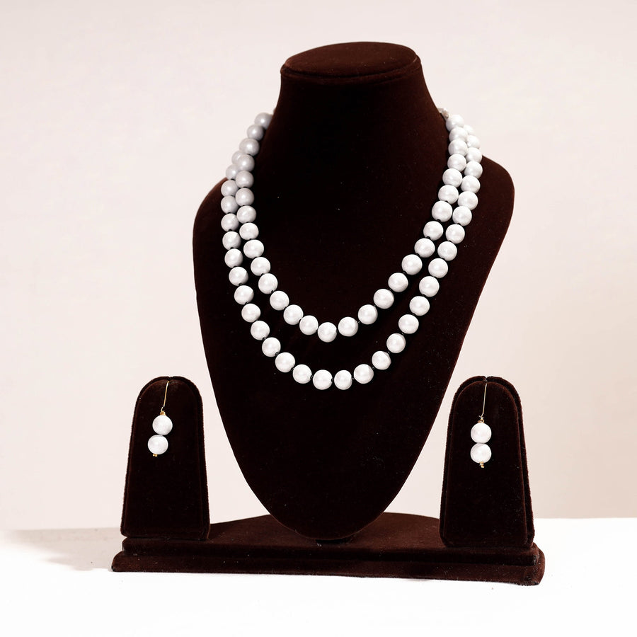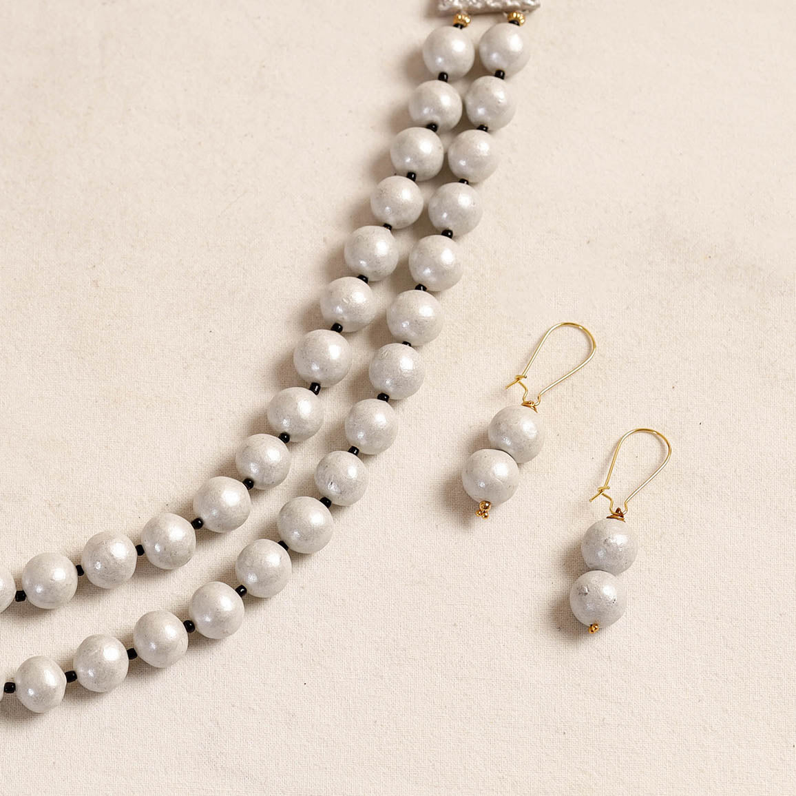 Elevate your style with our exquisite white hand-painted terracotta necklace set, a masterpiece crafted by skilled Bishnupur artisans. Each piece is adorned with vibrant acrylic colours, reflecting the region's artistic heritage. This exquisite set, complete with matching earrings, adds a touch of cultural charm to any outfit. This exquisite set not only enhances your style but also reflects the cultural richness of Bishnupur.