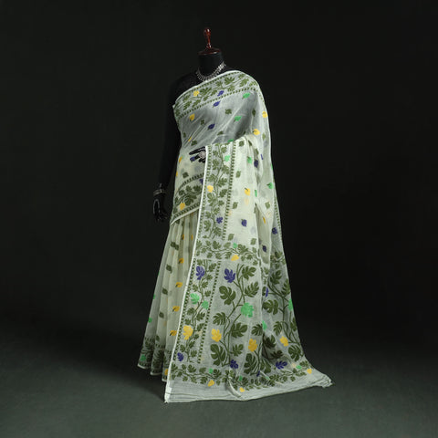 Dhakai jamdani saree is crafted from silk cotton blend using Bengal’s traditional extra-weft weaving technique. In this art form, delicate motifs are woven directly into the fabric instead of being printed or embroidered. Known for its lightweight texture and elegant appearance, the dhakai jamdani saree features beautiful floral and traditional designs. This saree is perfect for festive celebrations, cultural events, or graceful everyday wear.
