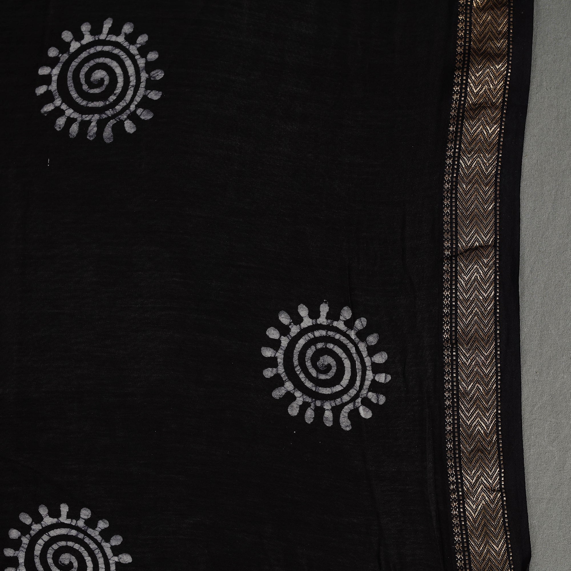 Black - Hand Batik Print Cotton 3pc Unstitched Dress Material 04