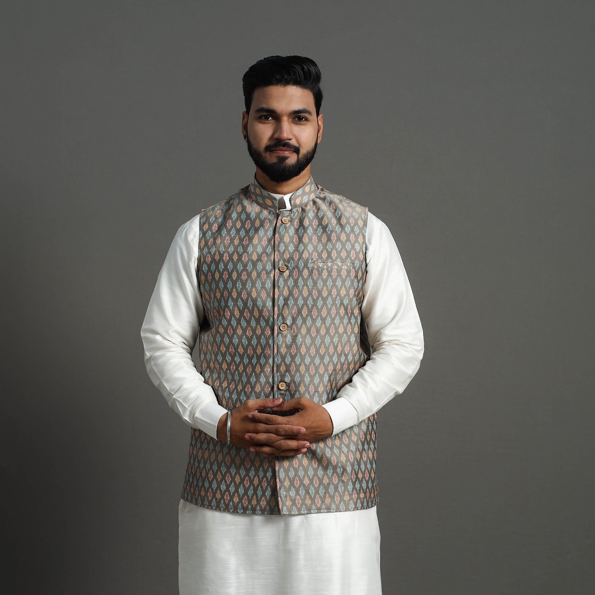 Wear A Patchwork Nehru Koti With a Plain Silk Kurta