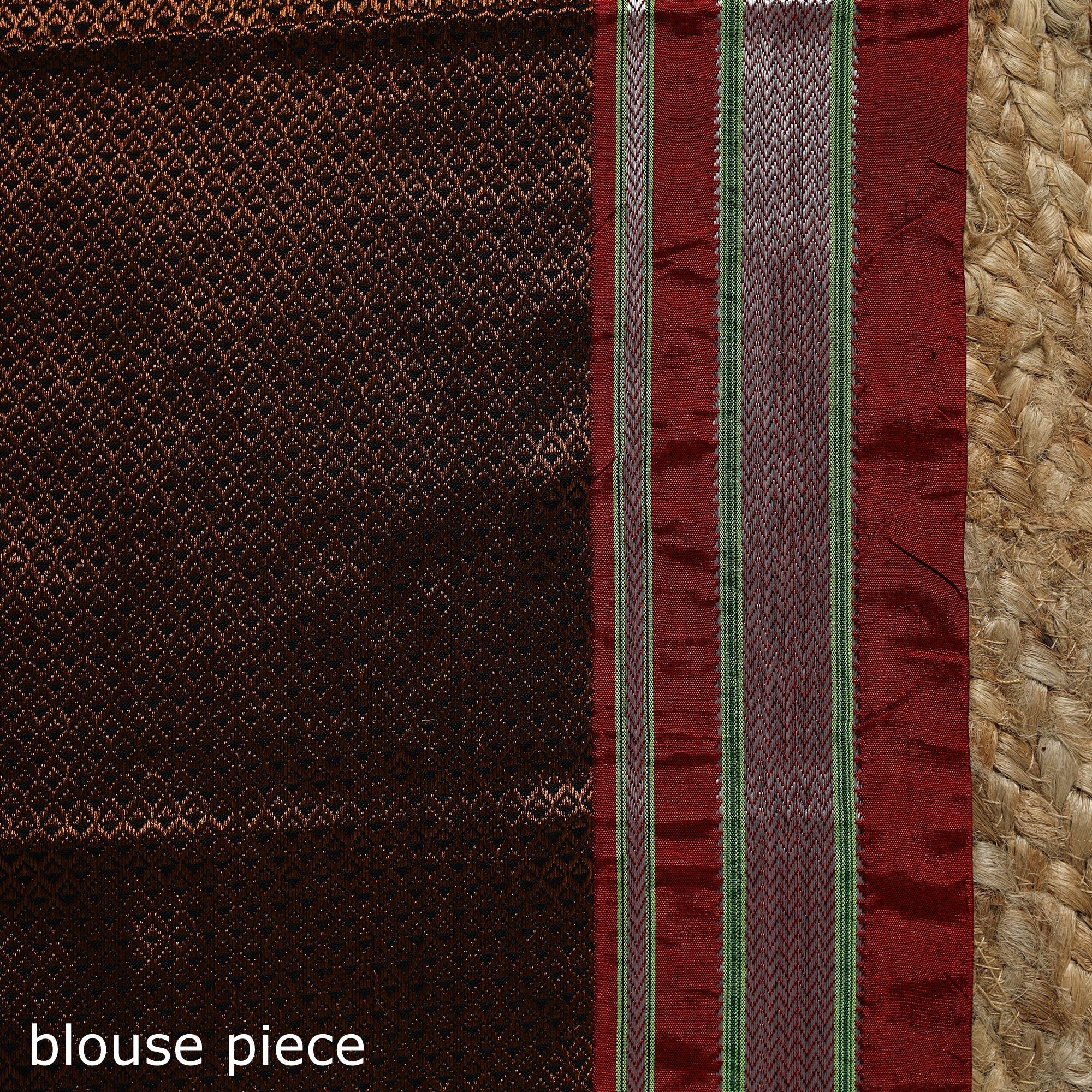 Khun is woven exclusively on a loom in Guledagudd, Bagalkot region, Karnataka. Used only for sari blouses, this handmade fabric is easily recognizable by its small white intricate motif and distinctive reddish-purple border.