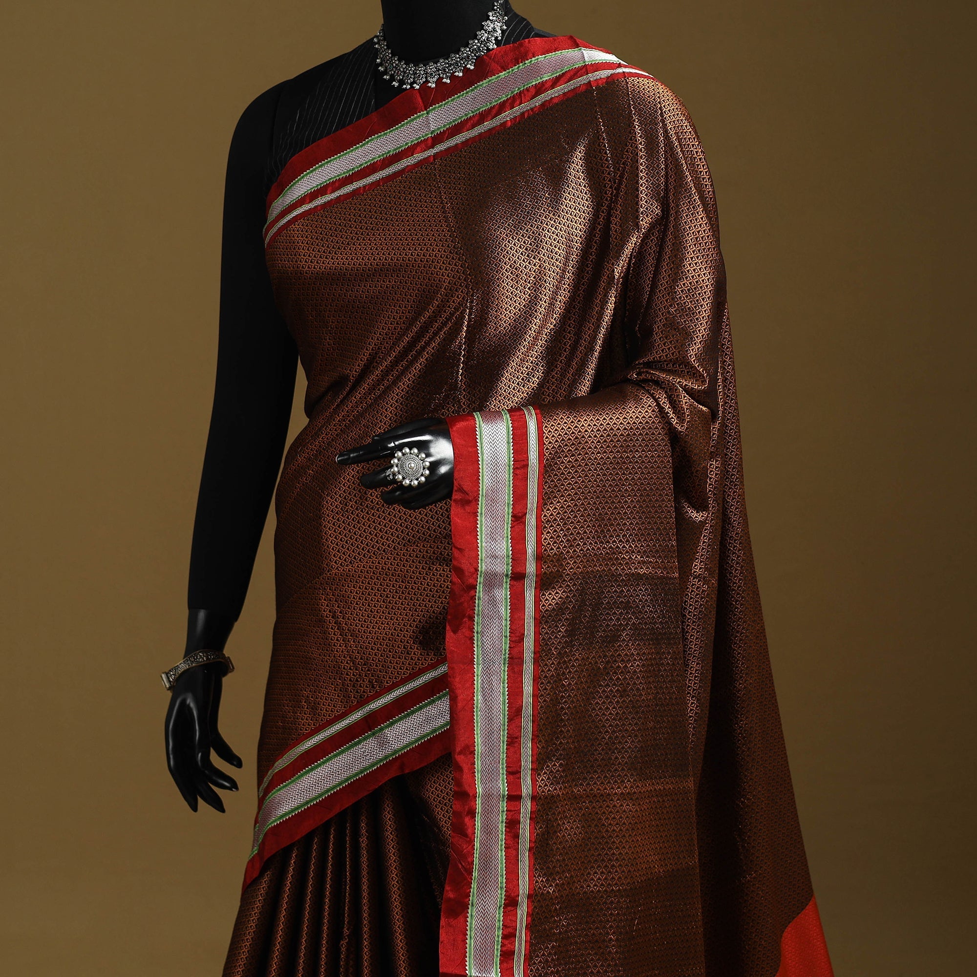 A real silk saree will have slight variations in texture uniformity, which are quite noticeable.