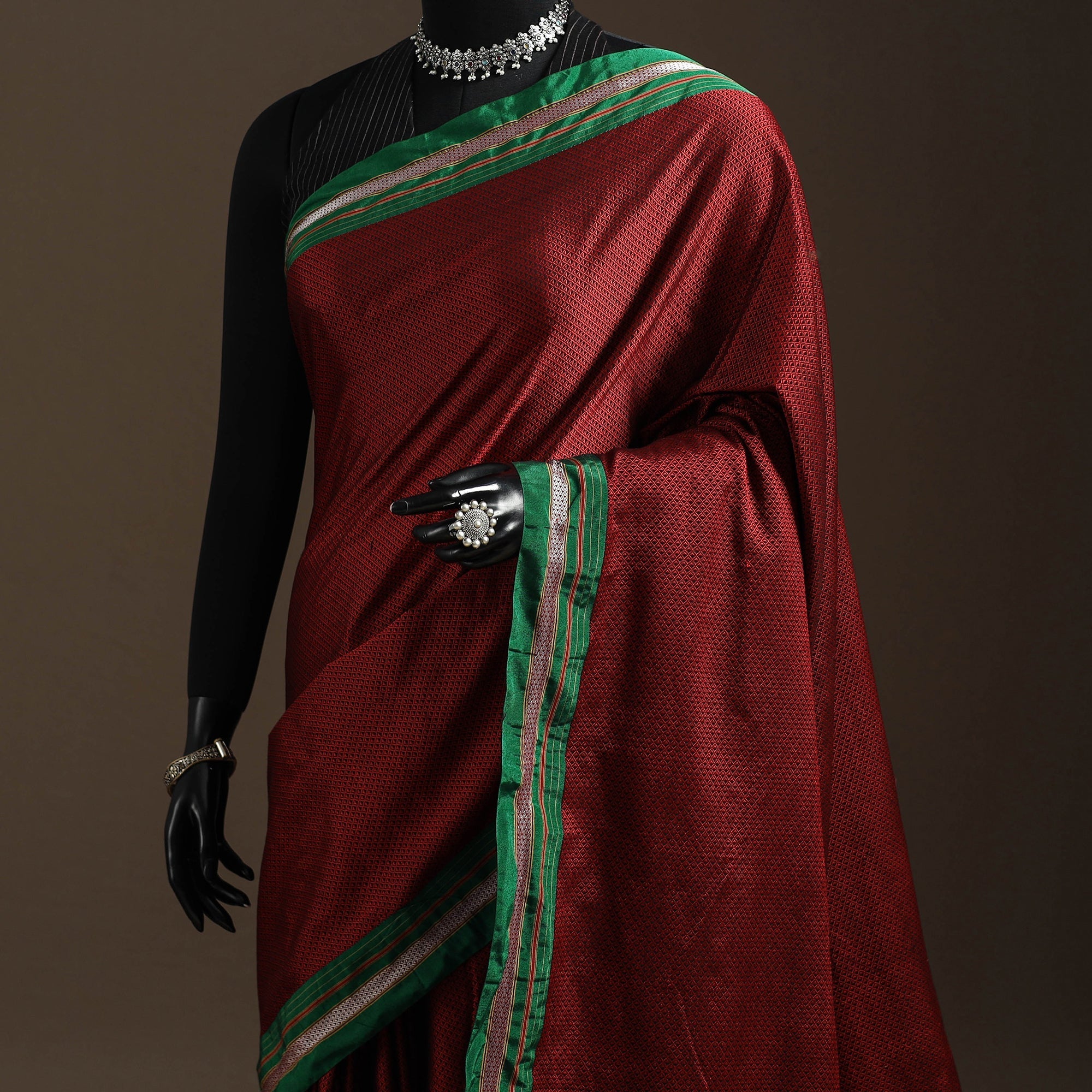 A real silk saree will have slight variations in texture uniformity, which are quite noticeable.