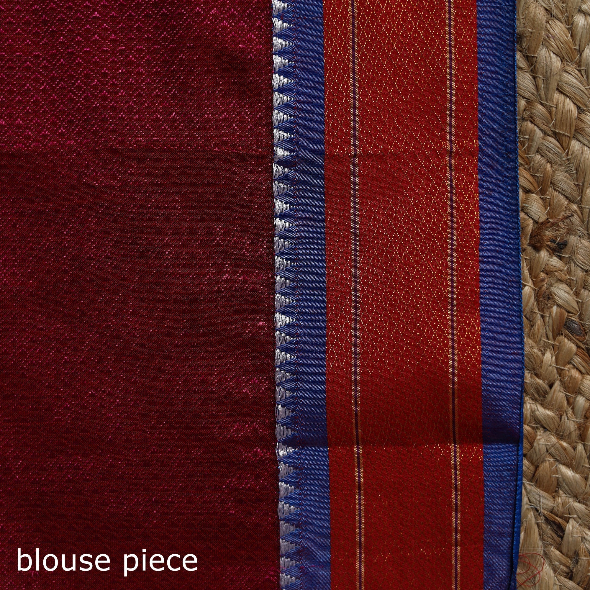 Khun is woven exclusively on a loom in Guledagudd, Bagalkot region, Karnataka. Used only for sari blouses, this handmade fabric is easily recognizable by its small white intricate motif and distinctive reddish-purple border.