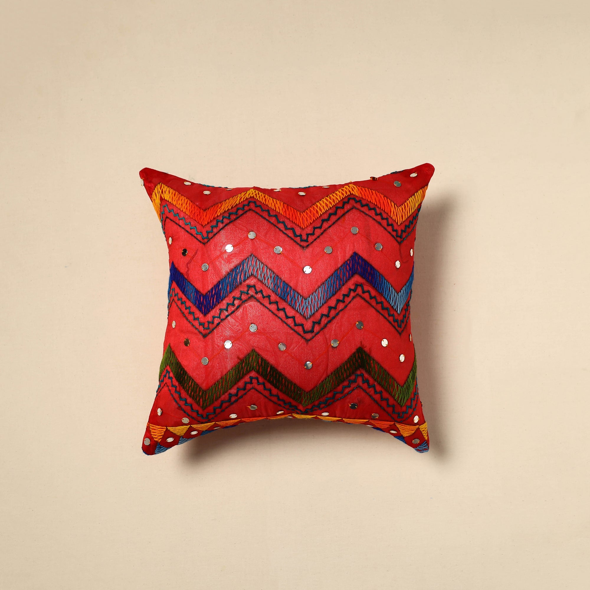 Enhance your home decor with our silk cotton red phulkari hand embroidery cushion cover. This cushion cover is inspired by traditional Phulkari art, It is the art of making beautiful, intricate designs and motifs on fabrics with different coloured threads. Perfectly suited for decorating sofas, beds and chairs, comfortable and stylish ambiance in your home.
