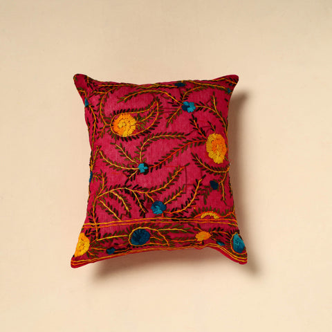 Enhance your home decor with our pink silk cotton phulkari hand embroidery cushion cover. This cushion cover is inspired by traditional Phulkari art, It is the art of making beautiful, intricate designs and motifs on fabrics with different coloured threads. Perfectly suited for decorating sofas, beds and chairs, comfortable and stylish ambiance in your home.
