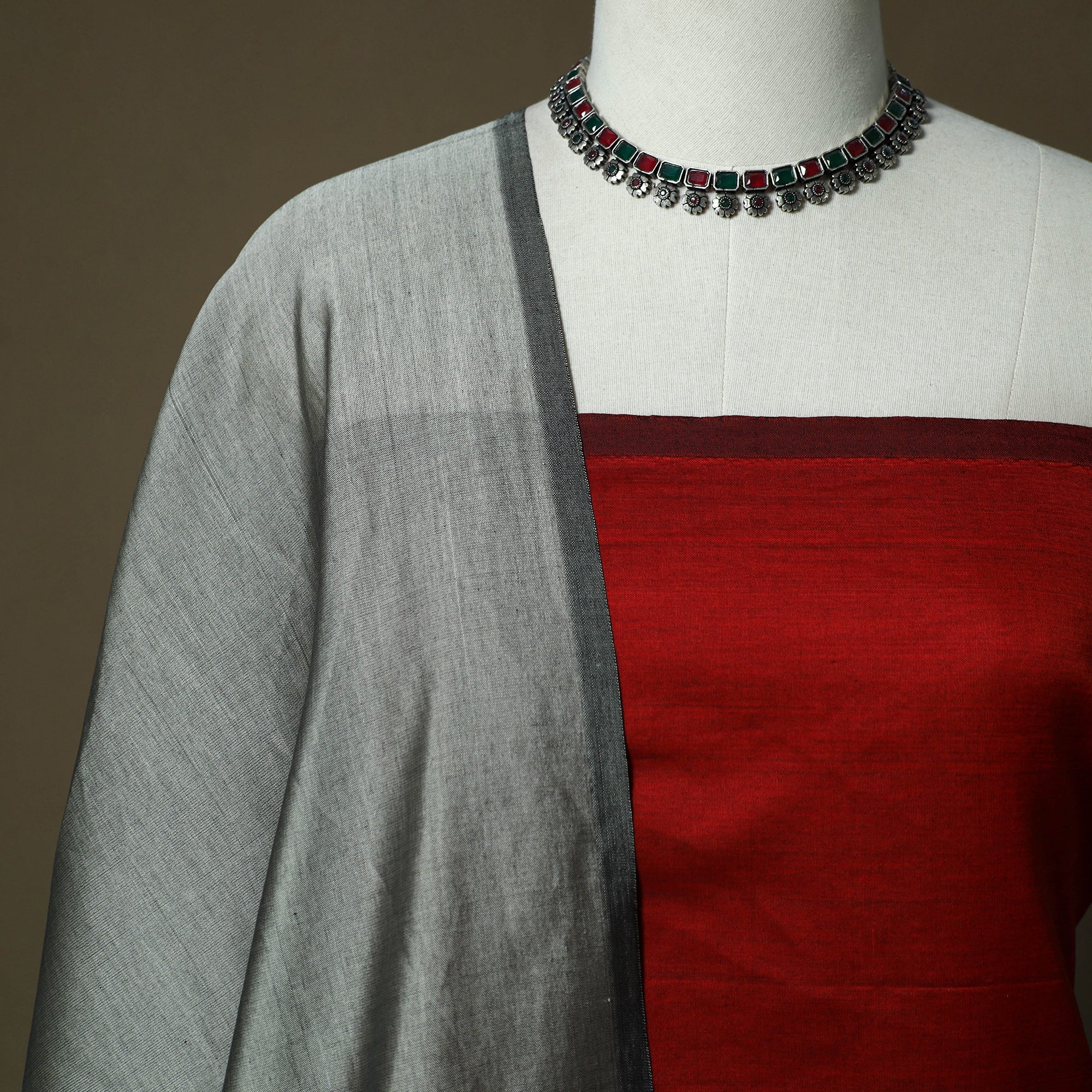 • Handloom silk cotton pochampally ikat 3pc unstitched dress