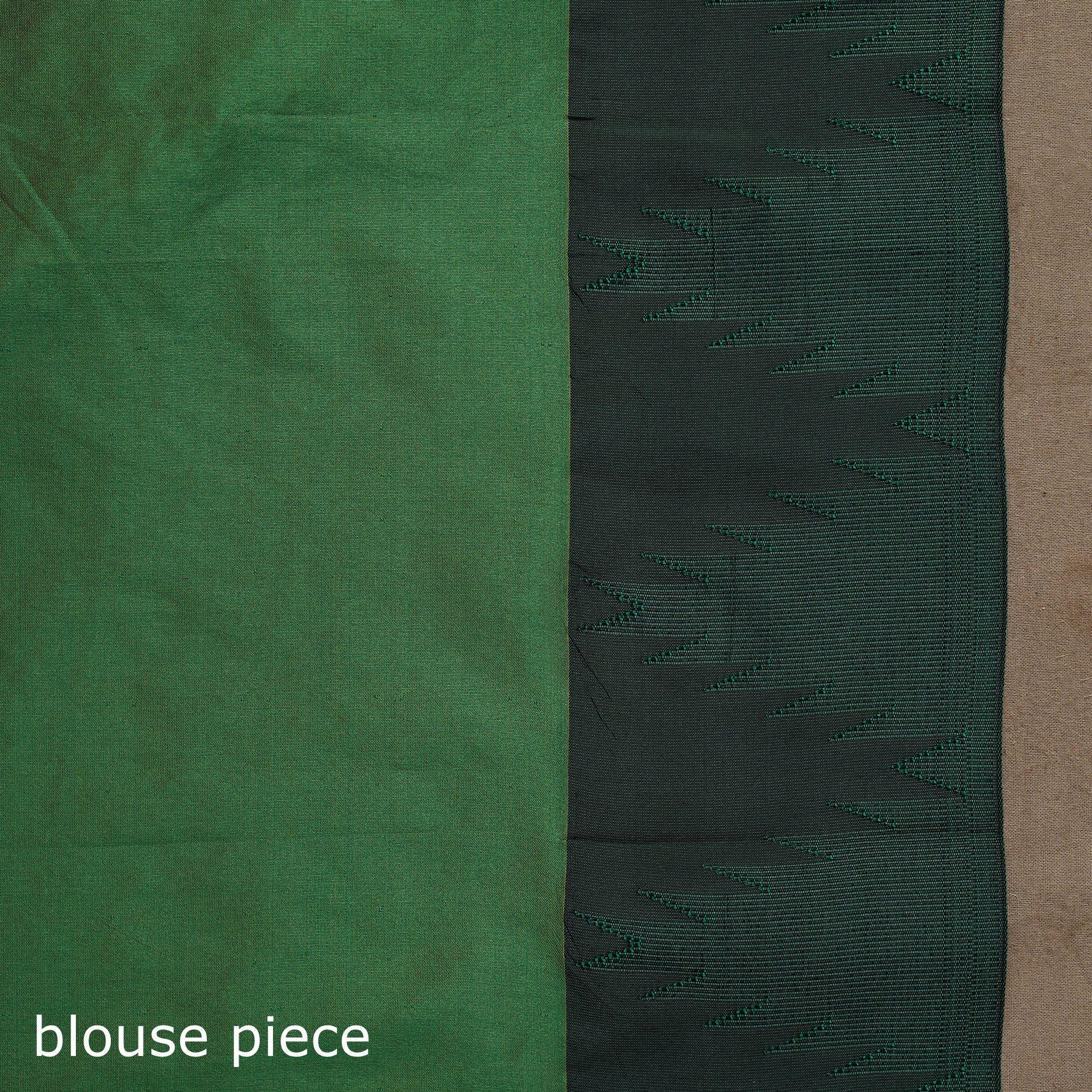 This ilkal saree, featuring a traditional temple border is crafted by skilled weavers of Karnataka. Woven using the Ilkal technique, it is made from silk that gives the drape a rich sheen and smooth texture. This saree is an elegant choice for festive celebrations, cultural gatherings or graceful everyday wear.