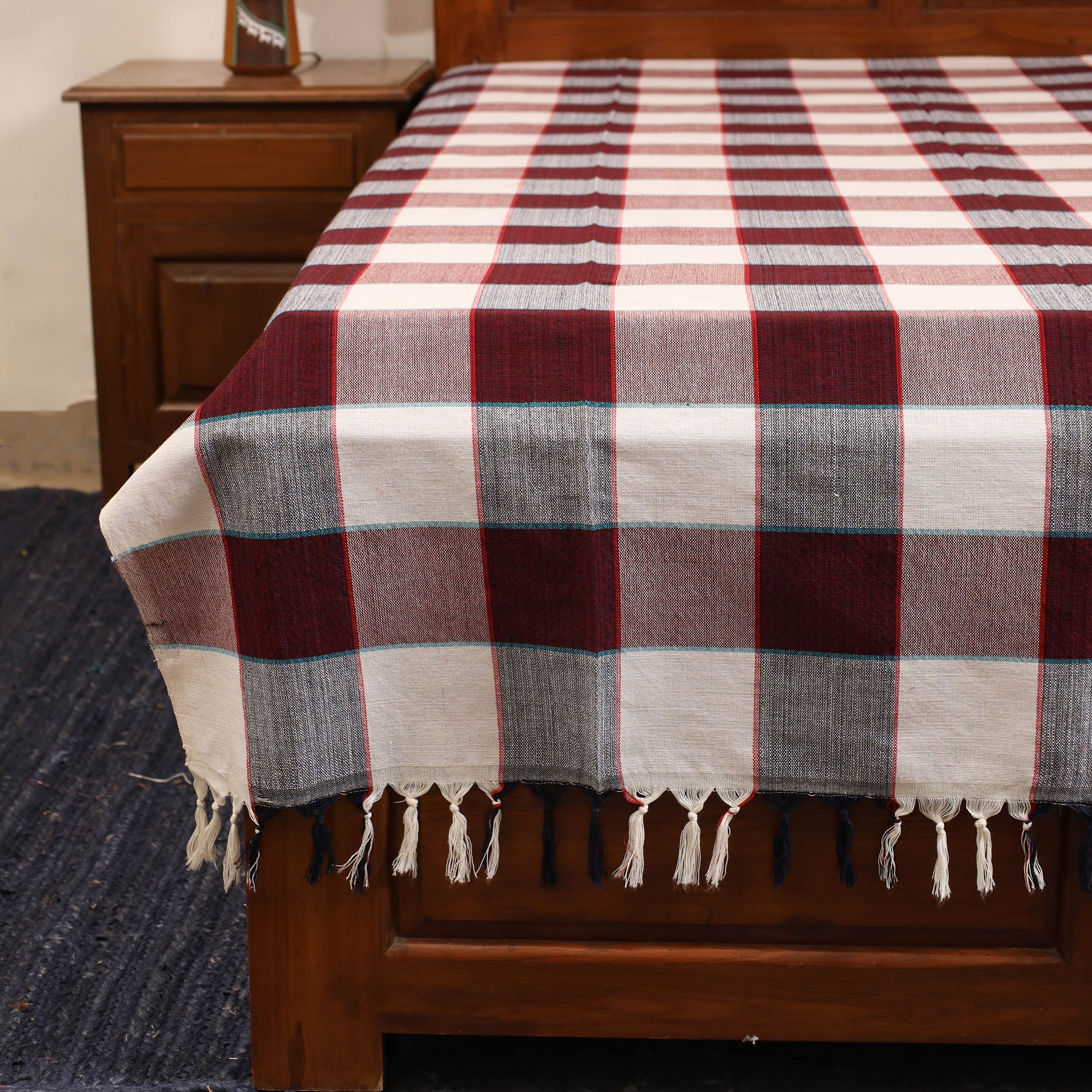 This beautifully woven maroon handloom bed sheet blends comfort with charm for your bedroom. Crafted from pure cotton, it ensures lasting durability and a gentle texture for restful sleep. The handloom weaving process gives each piece a unique character, reflecting the timeless traditions of skilled Indian artisans.