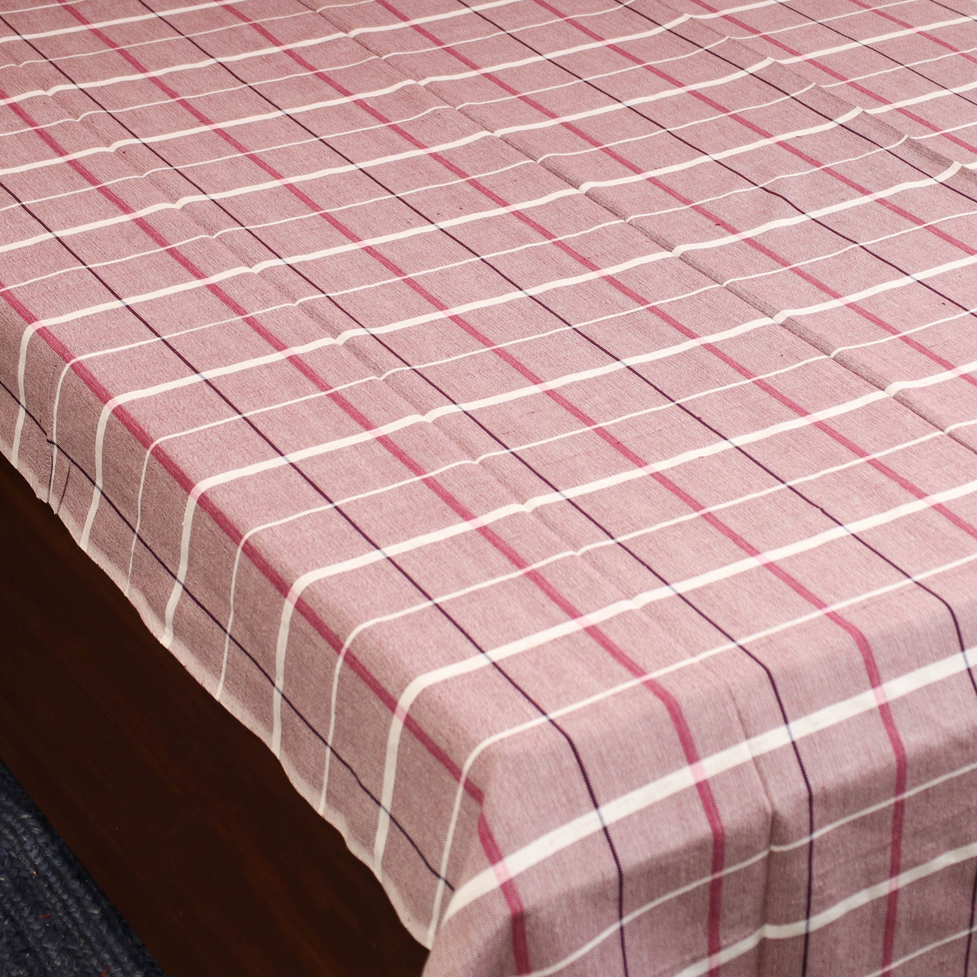 This beautifully woven purple handloom bed sheet blends comfort with charm for your bedroom. Crafted from pure cotton, it ensures lasting durability and a gentle texture for restful sleep. The handloom weaving process gives each piece a unique character, reflecting the timeless traditions of skilled Indian artisans.