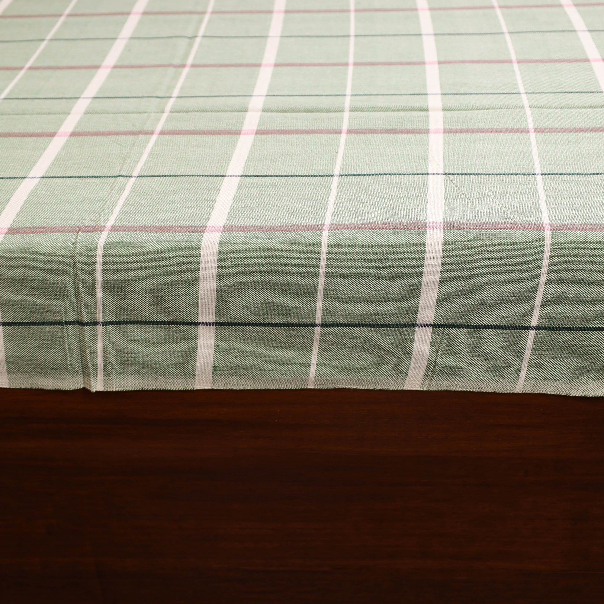 This beautifully woven green handloom bed sheet blends comfort with charm for your bedroom. Crafted from pure cotton, it ensures lasting durability and a gentle texture for restful sleep. The handloom weaving process gives each piece a unique character, reflecting the timeless traditions of skilled Indian artisans.