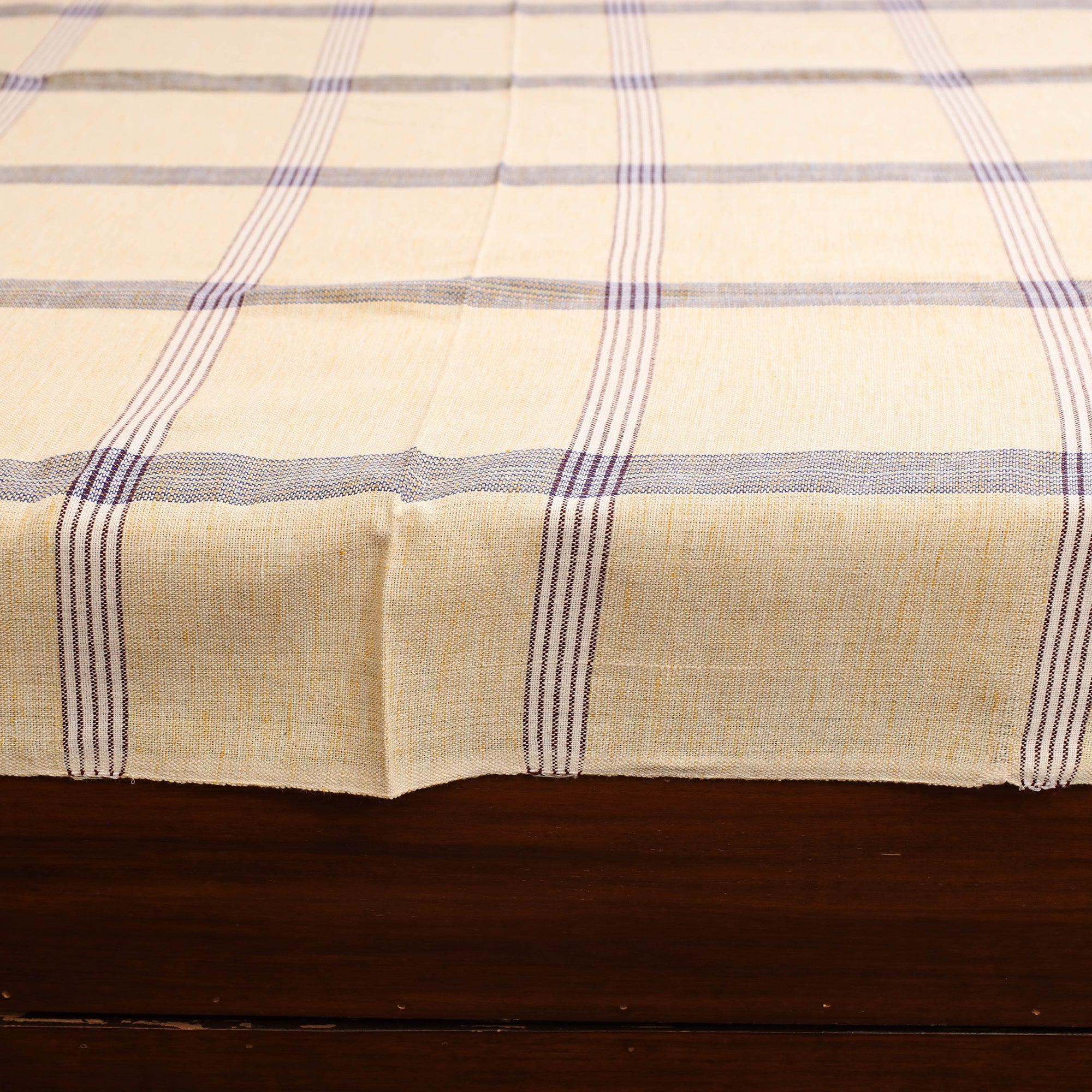 This beautifully woven beige handloom bed sheet blends comfort with charm for your bedroom. Crafted from pure cotton, it ensures lasting durability and a gentle texture for restful sleep. The handloom weaving process gives each piece a unique character, reflecting the timeless traditions of skilled Indian artisans.