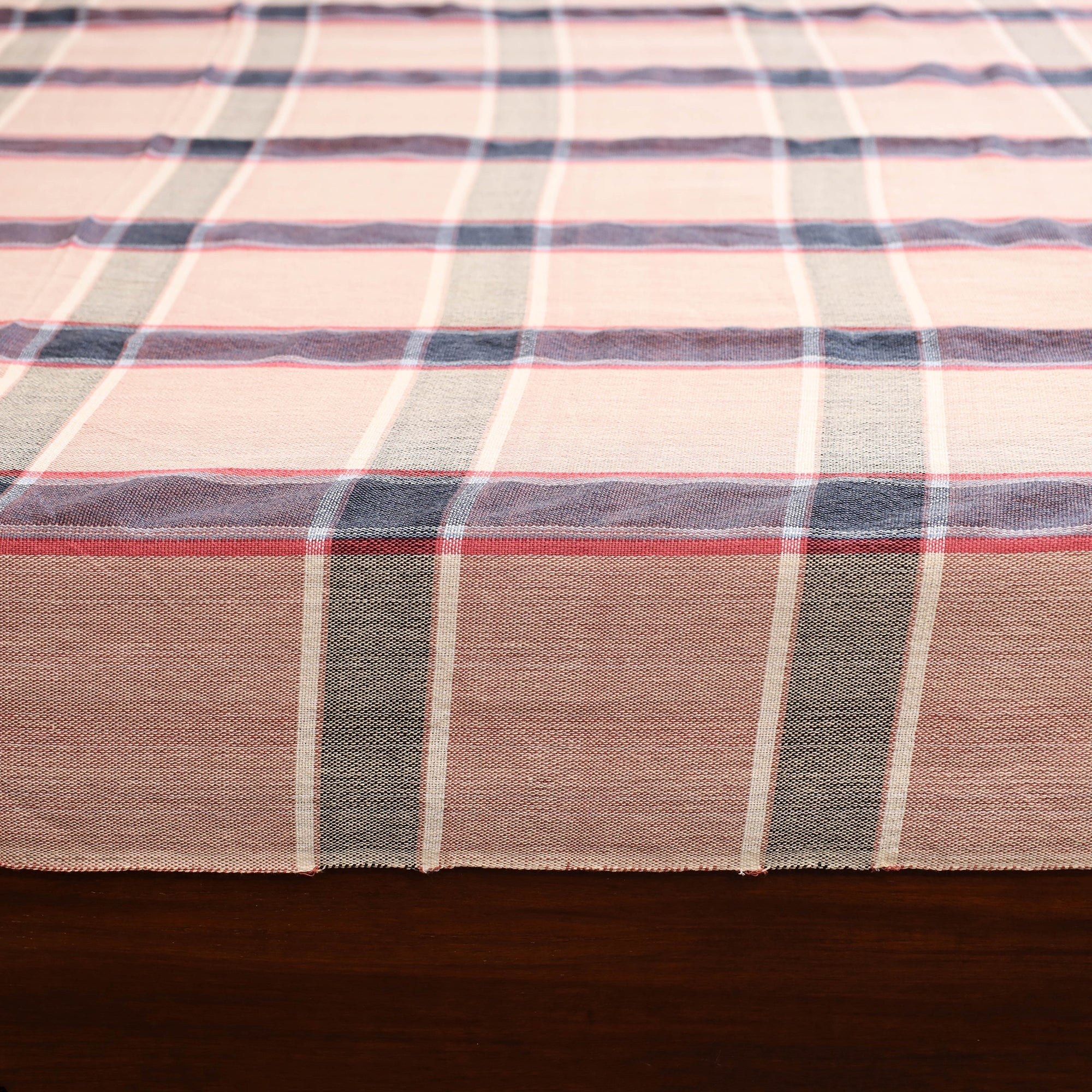 This beautifully woven pink handloom bed sheet blends comfort with charm for your bedroom. Crafted from pure cotton, it ensures lasting durability and a gentle texture for restful sleep. The handloom weaving process gives each piece a unique character, reflecting the timeless traditions of skilled Indian artisans.
