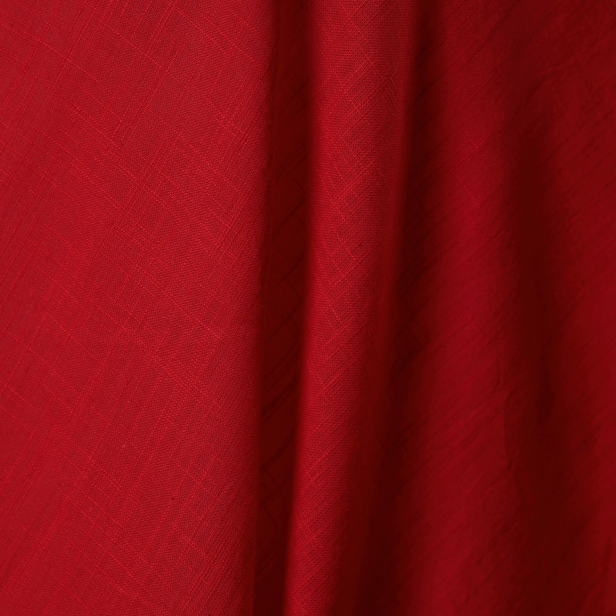 This red slub cotton plain fabric features a subtly uneven texture created by thicker and thinner yarns, giving it a distinctive look and feel. Perfect for stitching kurtas, suits, or creating simple home décor items like cushion covers and curtains. This is a machine-made fabric with no handmade process involved.