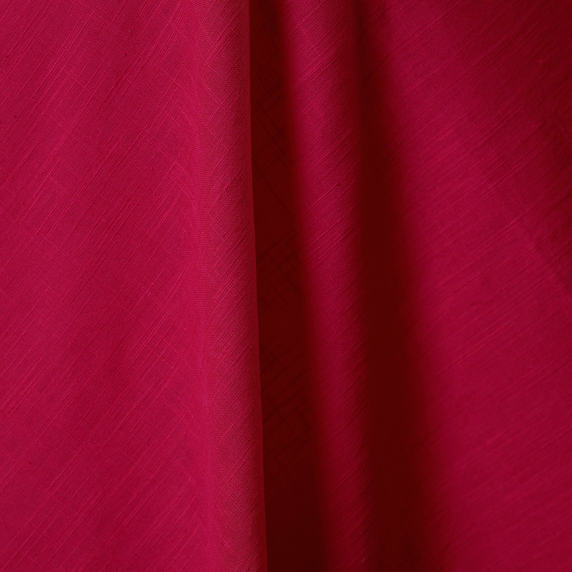 This pink slub cotton plain fabric features a subtly uneven texture created by thicker and thinner yarns, giving it a distinctive look and feel. Perfect for stitching kurtas, suits, or creating simple home décor items like cushion covers and curtains. This is a machine-made fabric with no handmade process involved.
