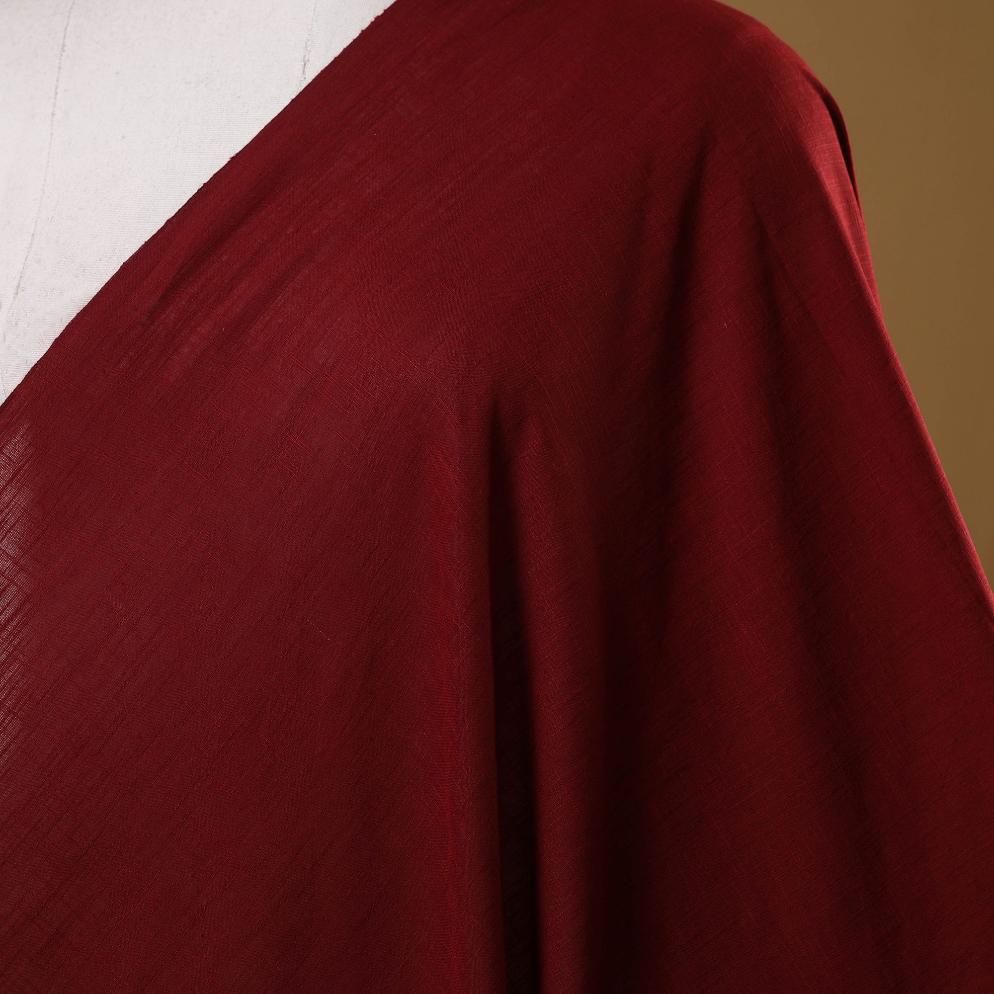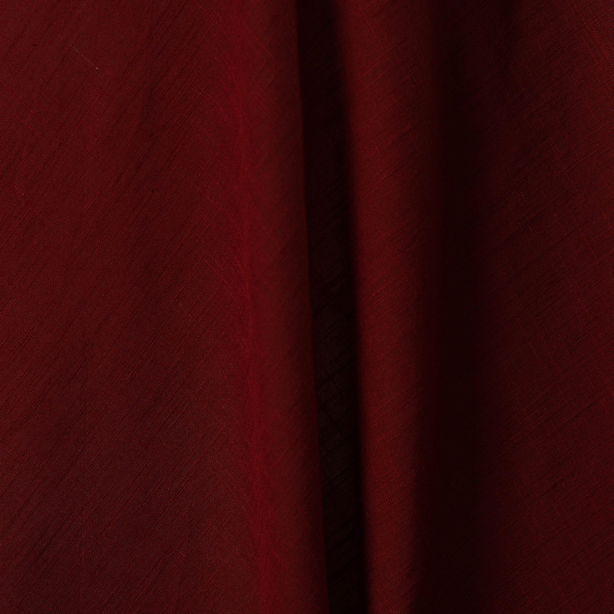 This maroon slub cotton plain fabric features a subtly uneven texture created by thicker and thinner yarns, giving it a distinctive look and feel. Perfect for stitching kurtas, suits, or creating simple home décor items like cushion covers and curtains. This is a machine-made fabric with no handmade process involved.