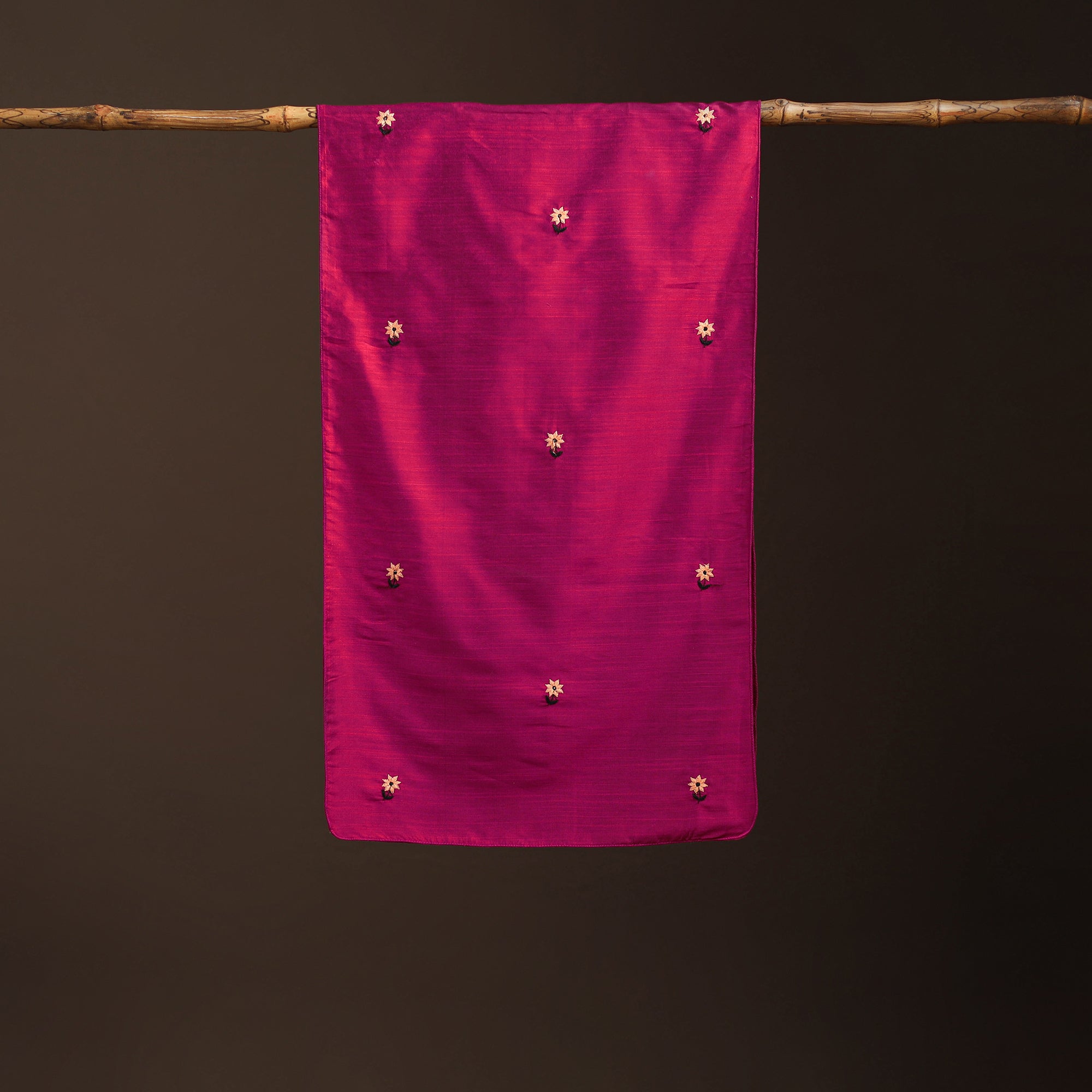 Enhance your look with this artfully made pink plain stole. Crafted from slub silk, it features intricate hand embroidery that adds a touch of elegance and charm. It pairs beautifully with kurtas, dresses or tunics, adding a refined and graceful touch to your style.