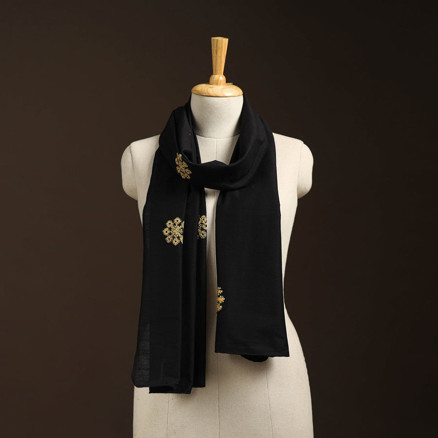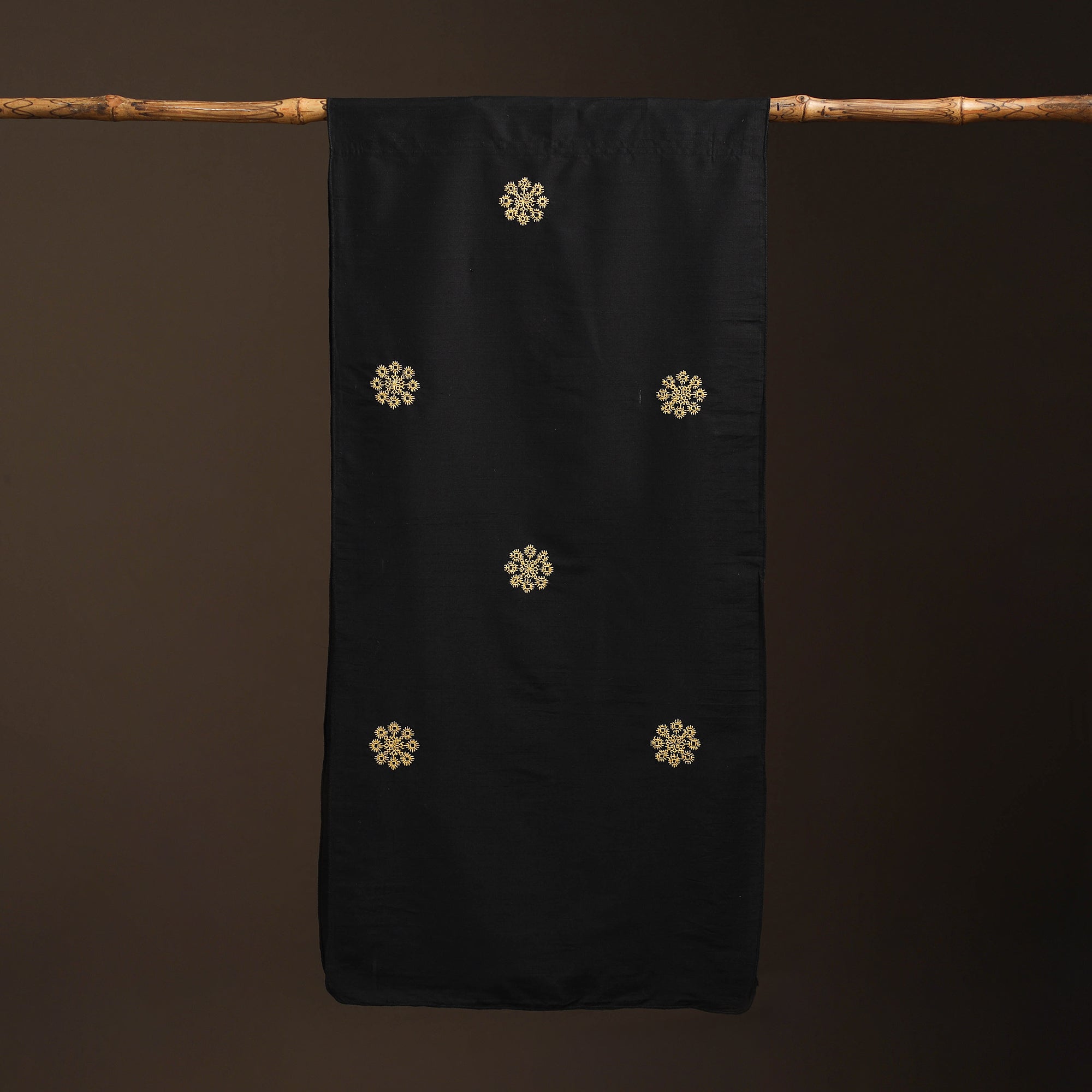Black - Slub Silk Hand Embroidered Plain Stole 06