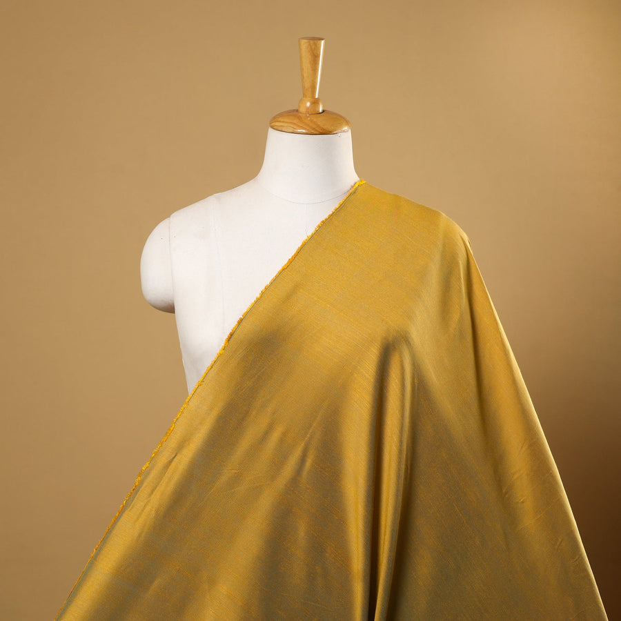 This yellow plain slub silk fabric is ideal for creating elegant garments, sarees, and traditional outfits. Made from a blend of viscose and polyester, it has a smooth, solid texture with no transparency. While it is not pure silk, it is made in a region known for silk textiles, giving it a unique place in textile production.