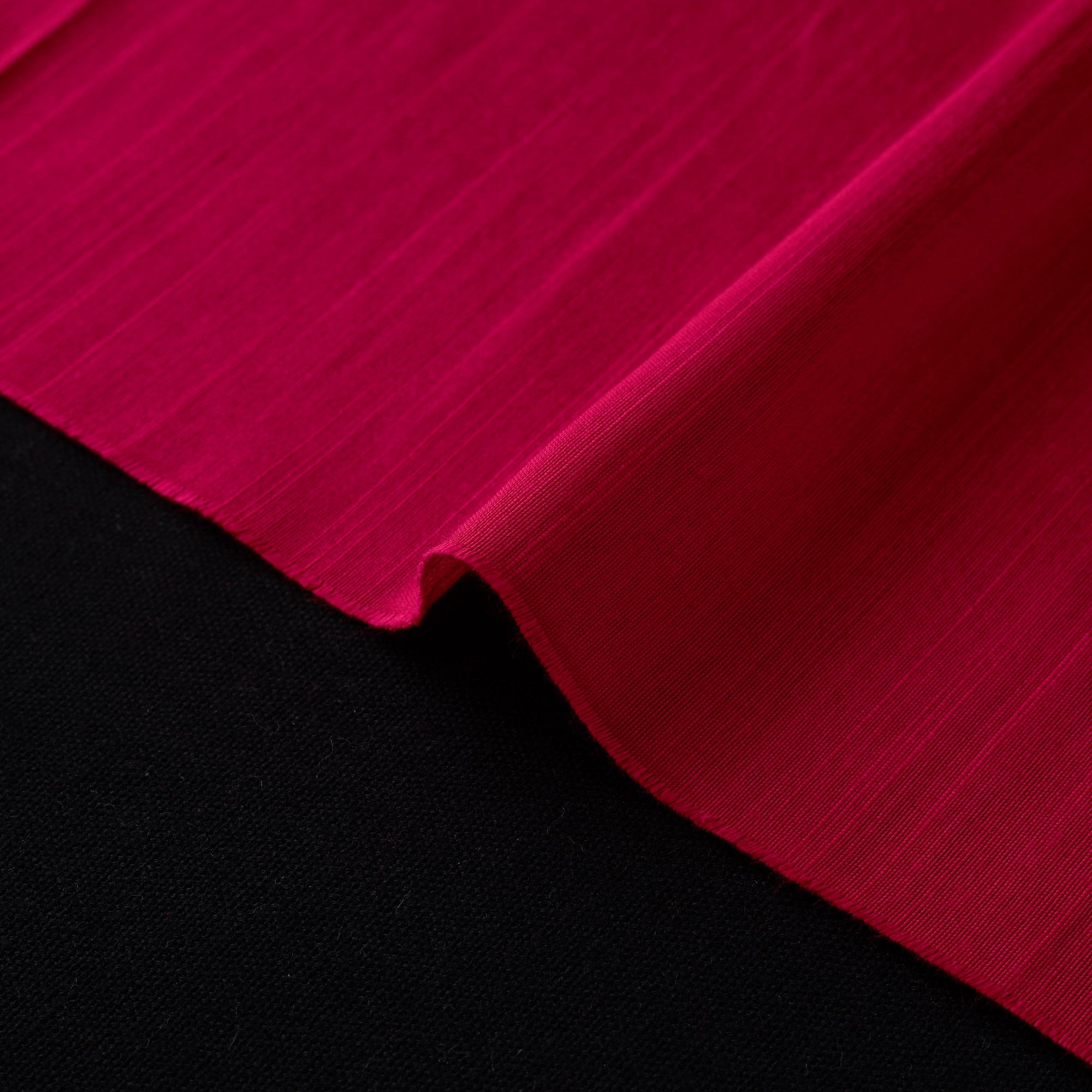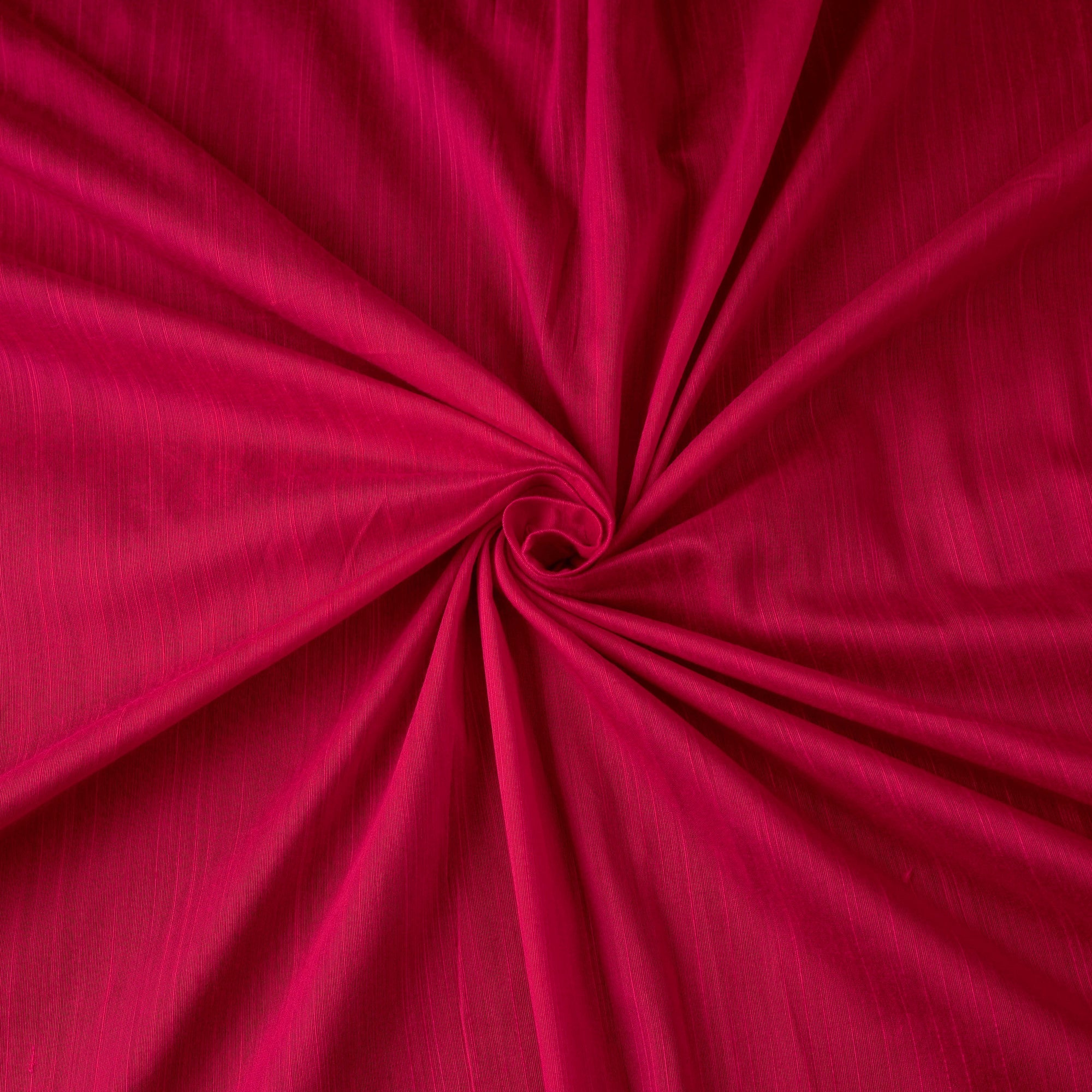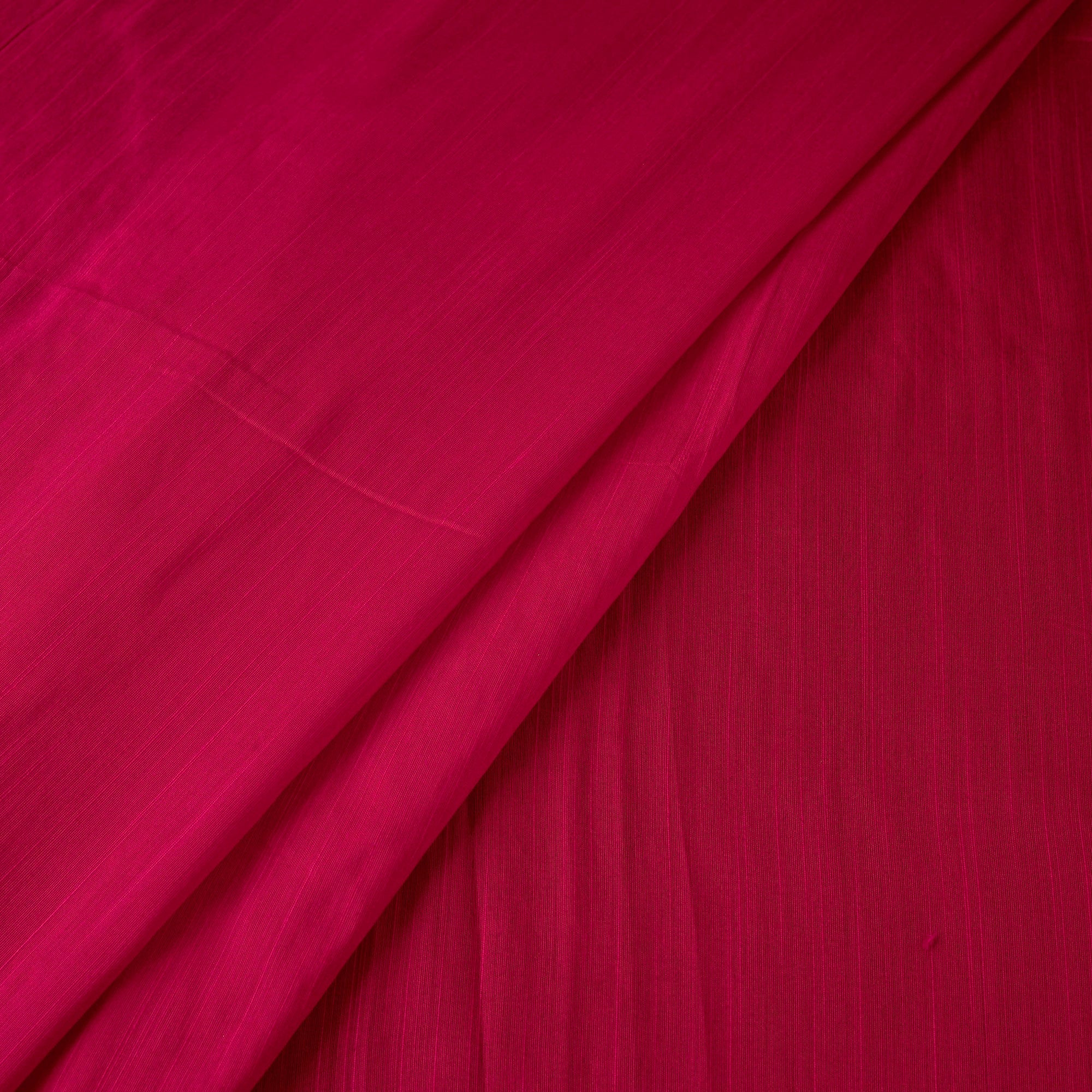 This pink plain slub silk fabric is ideal for creating elegant garments, sarees, and traditional outfits. Made from a blend of viscose and polyester, it has a smooth, solid texture with no transparency. While it is not pure silk, it is made in a region known for silk textiles, giving it a unique place in textile production.