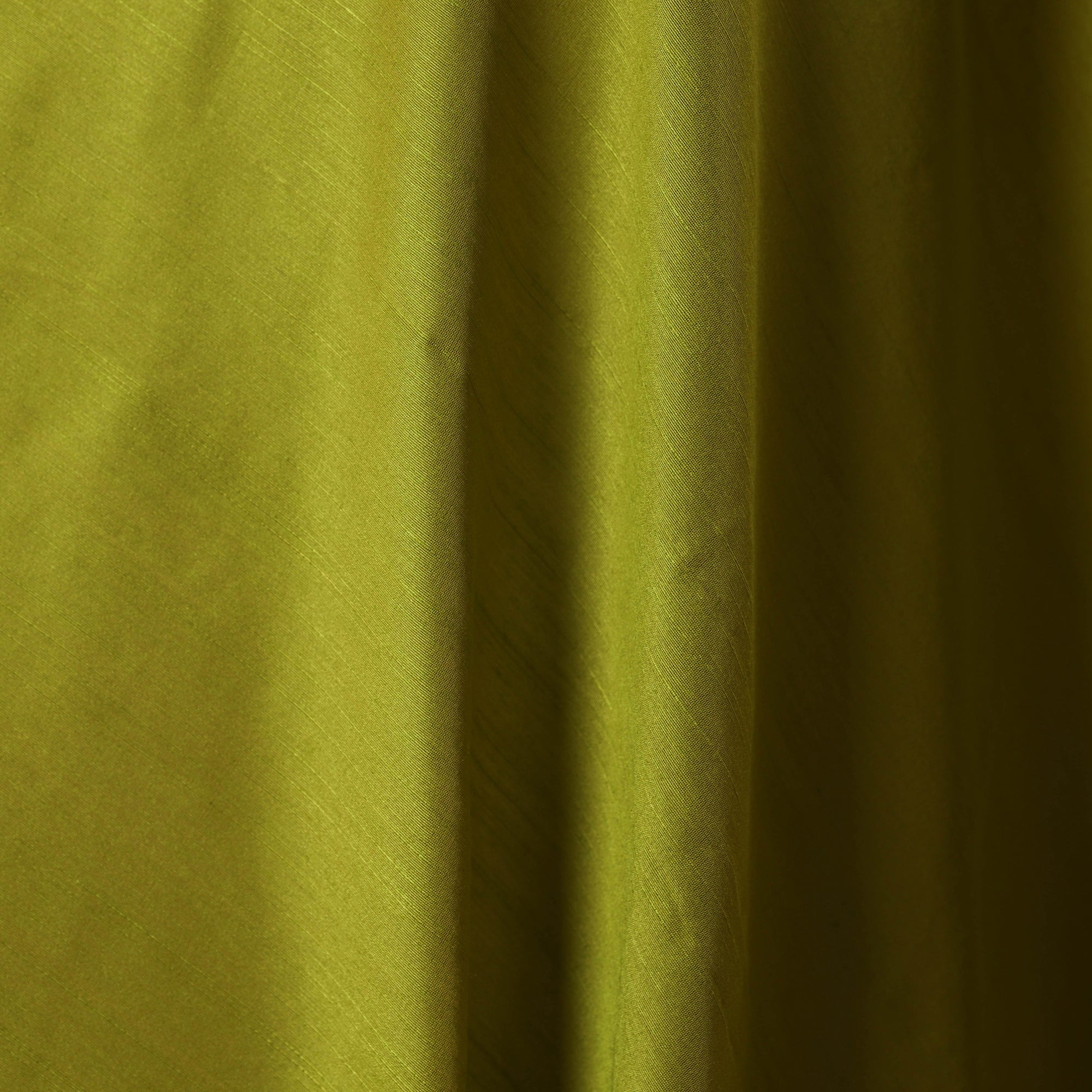 This green plain slub silk fabric is ideal for creating elegant garments, sarees, and traditional outfits. Made from a blend of viscose and polyester, it has a smooth, solid texture with no transparency. While it is not pure silk, it is made in a region known for silk textiles, giving it a unique place in textile production.