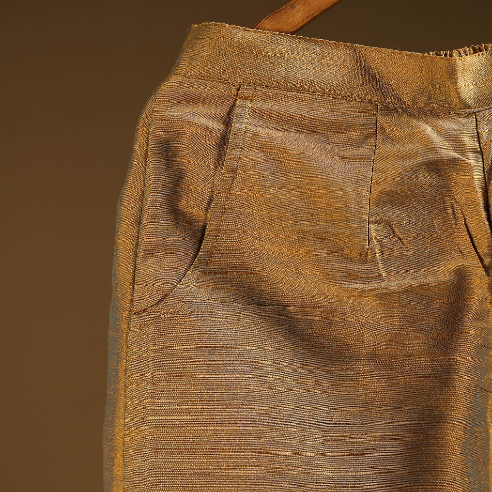 Made from a blend of viscose and polyester, this slub silk plain palazzo features a soft texture and a gentle sheen. Designed with an elasticated waistband and two side pockets for ease, it is a versatile piece that pairs well with kurtas, tunics, or tops, perfect for casual outings or festive styling.