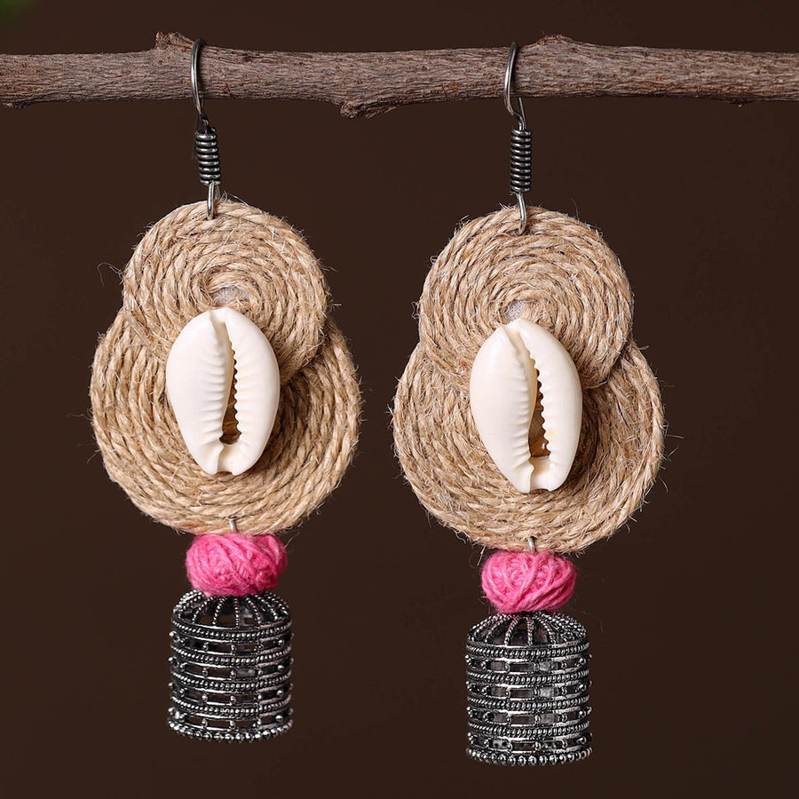 Material  These beige handcrafted german silver jute jhumki earrings. Featuring intricate jute, seashell, and thread detailing, these earrings add a unique and vibrant touch to your look. Perfect for casual wear or festive occasions.