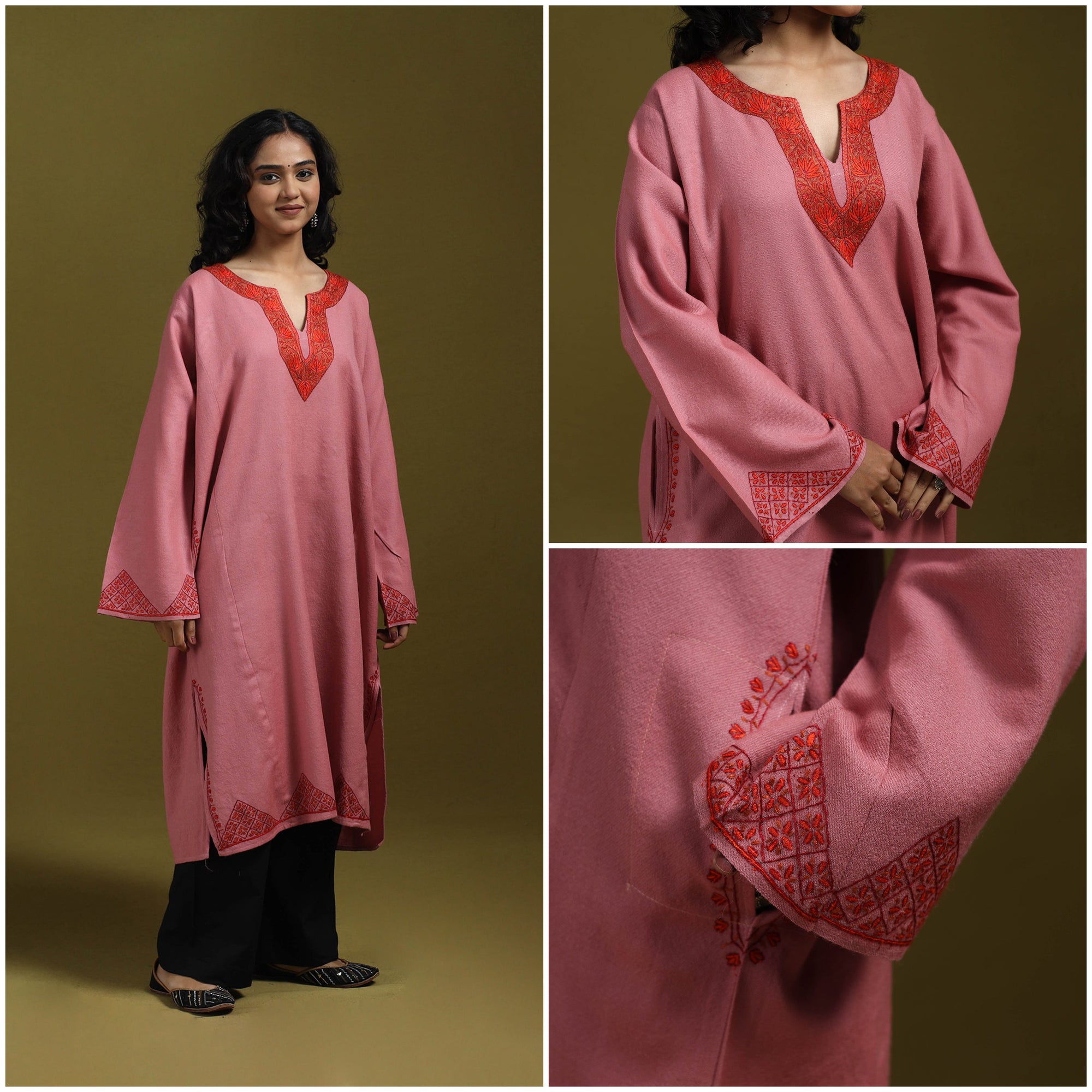 • Sozni hand embroidered kashmiri merino wool pheran 05
