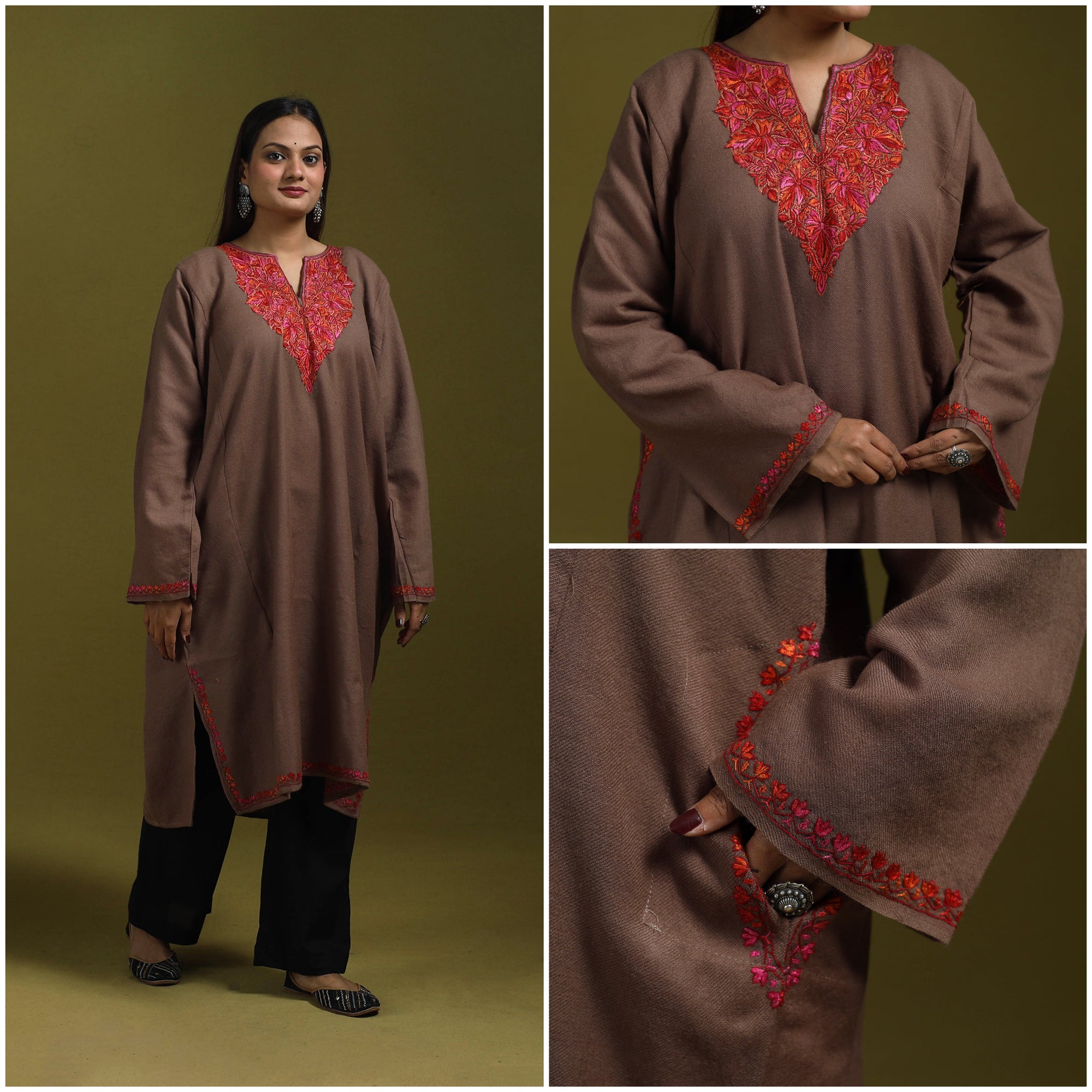 • Sozni hand embroidered kashmiri merino wool pheran 57